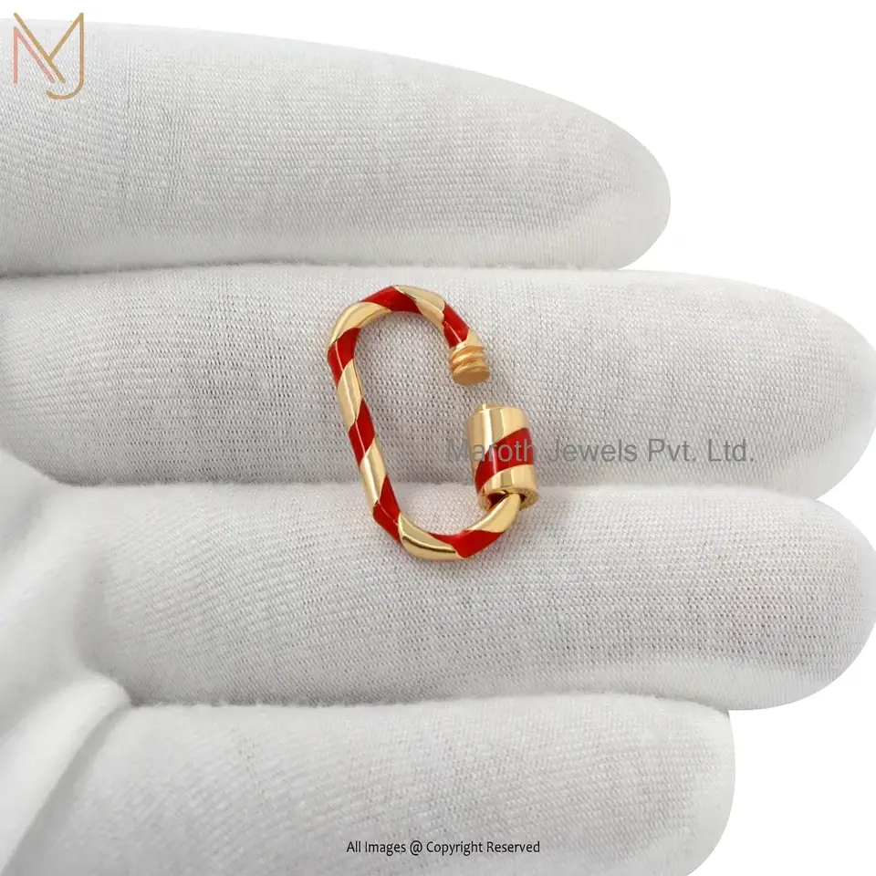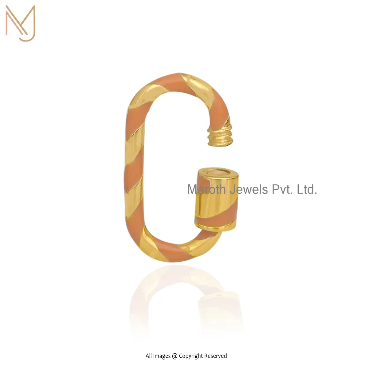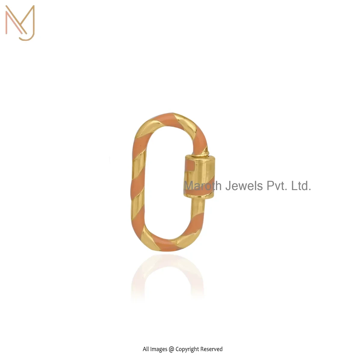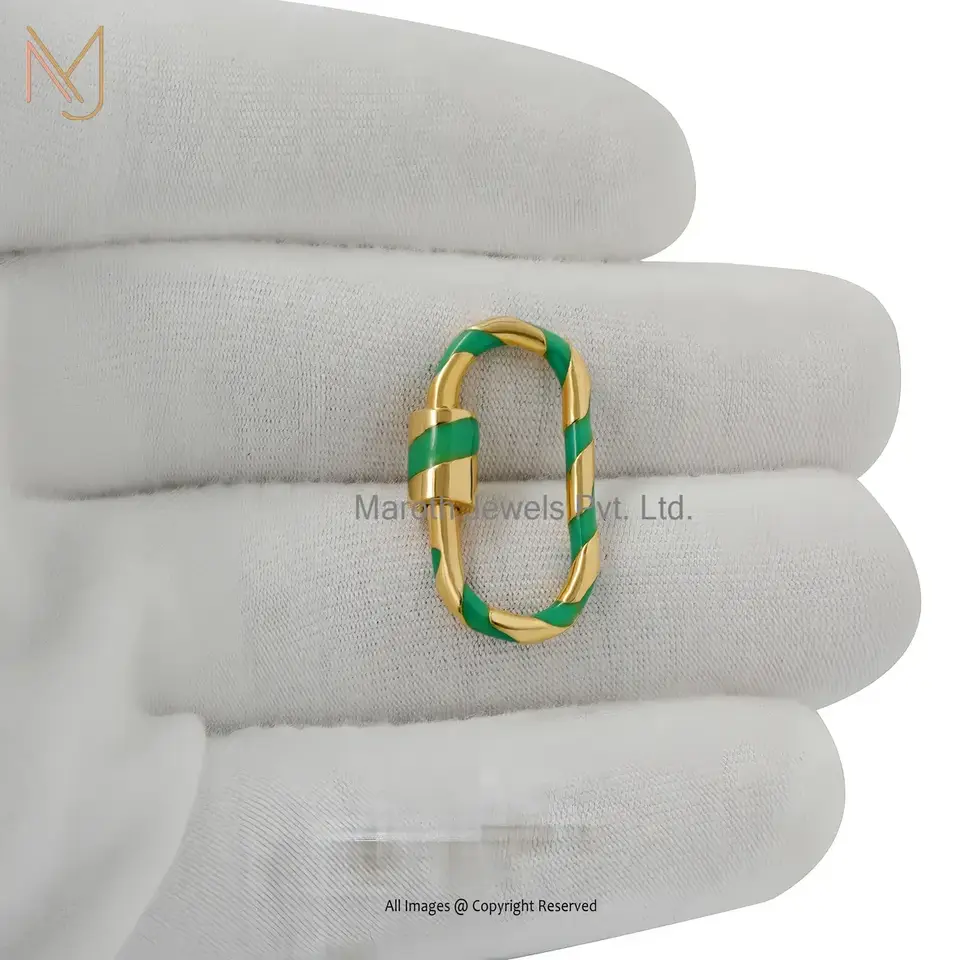 925 Silver Yellow Gold Plated Green Enamel Carabiner Lock Custom Jewelry