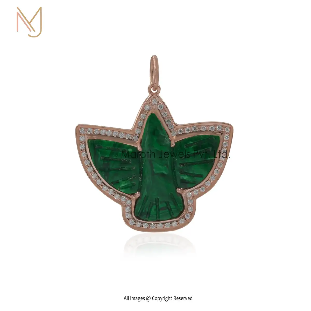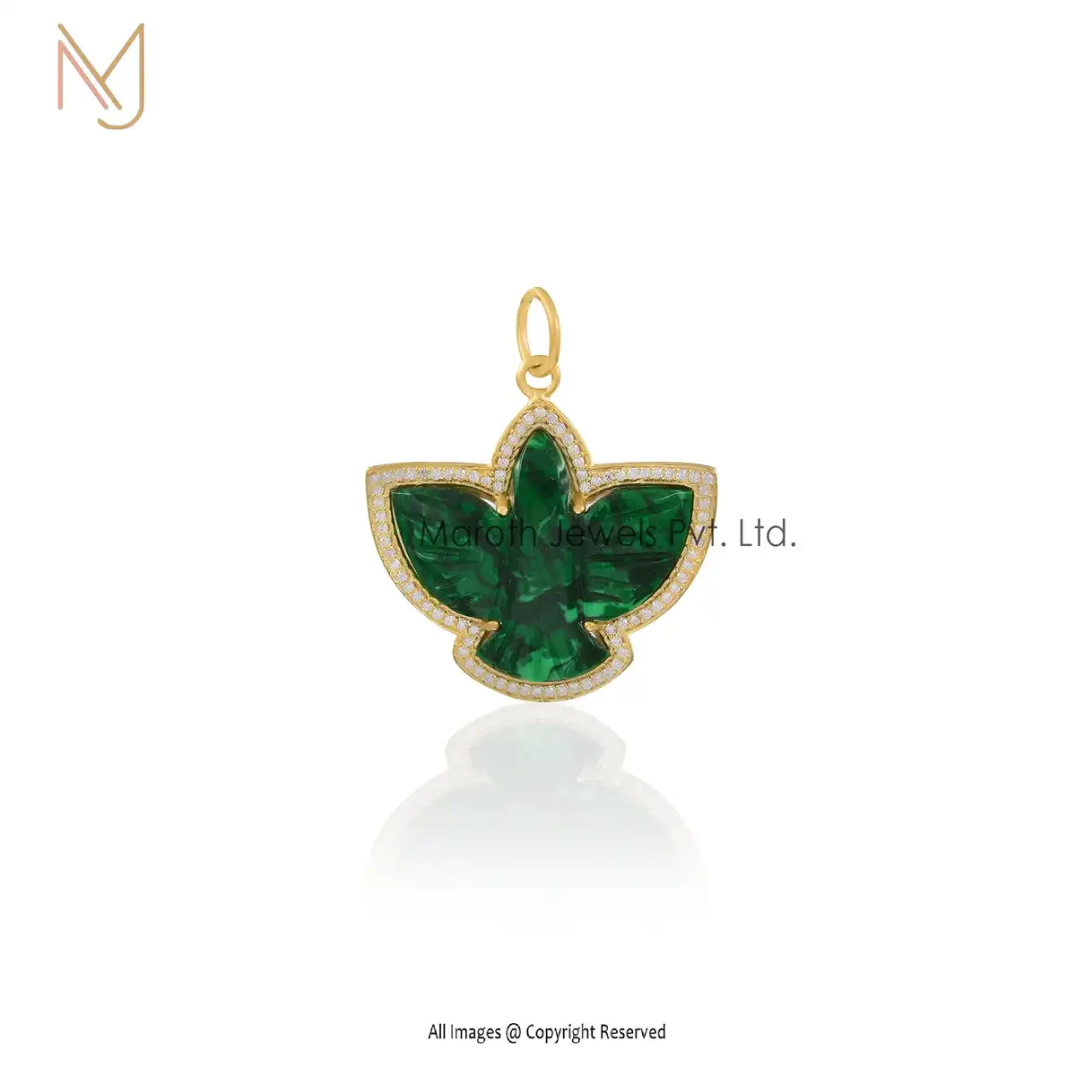 14K Yellow Gold Green Onyx & Moissanite swallow Bird Charm Pendants Manufacturer