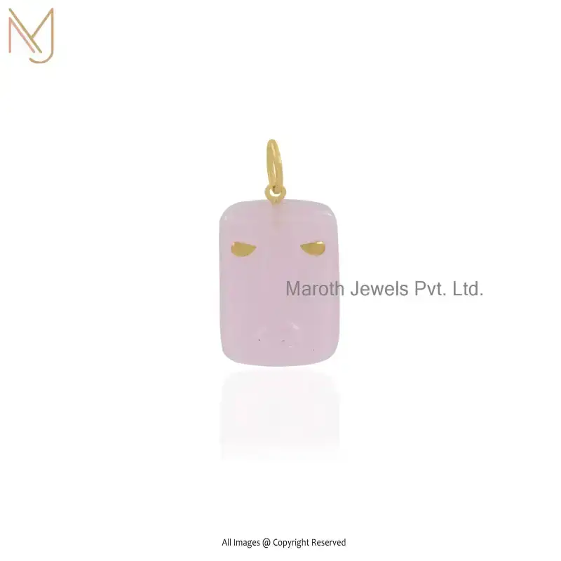 14K Yellow Gold Green Opal And Carved Face Pendant Custom Jewelry