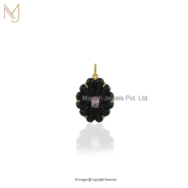 14K Yellow Gold Green Opal & Blue Sapphire Blossom Flower Gemstone Pendant Manufacturer