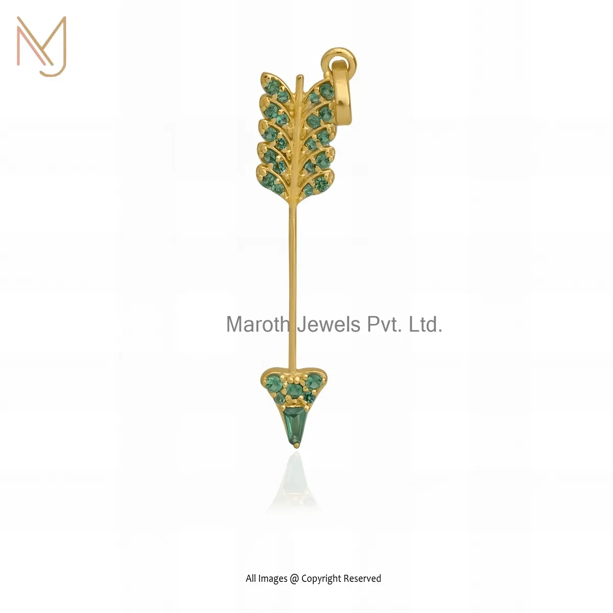 14K Yellow Gold Green Sapphire Arrow Pendant Jewelry Supplier