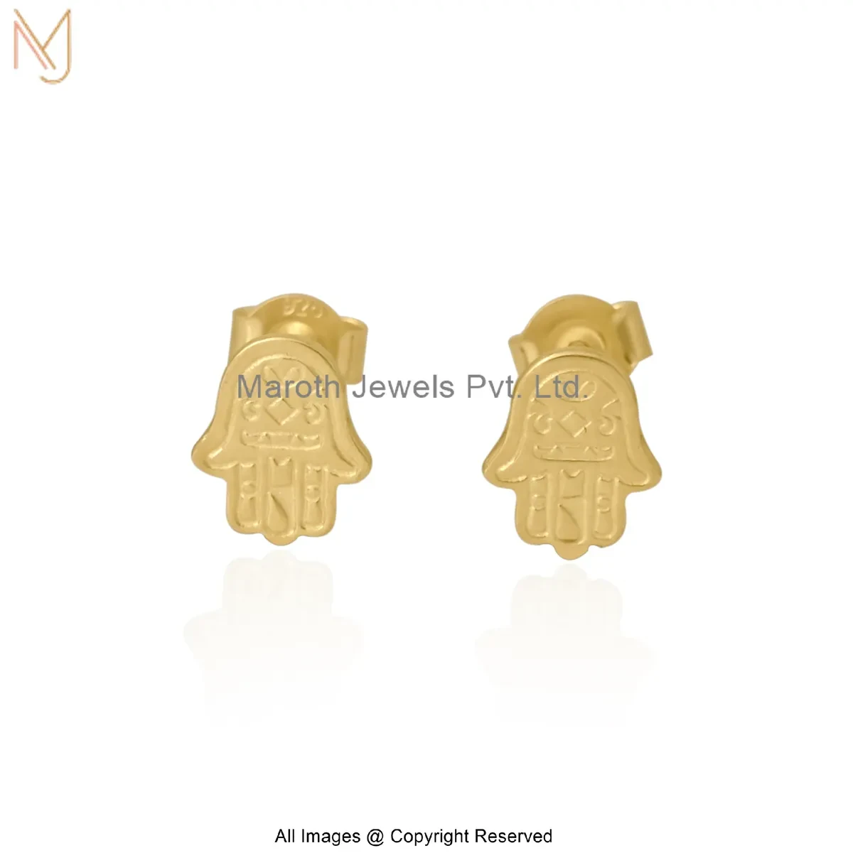 14K Yellow Gold Hamsa Stud Earring Custom Jewelry