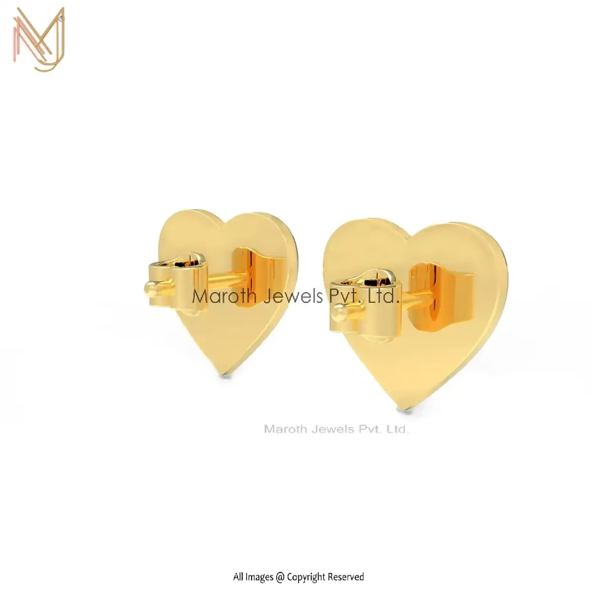 14K Yellow Gold Heart Design Studs Heart Earrings Handmade Jewelry Manufacturer