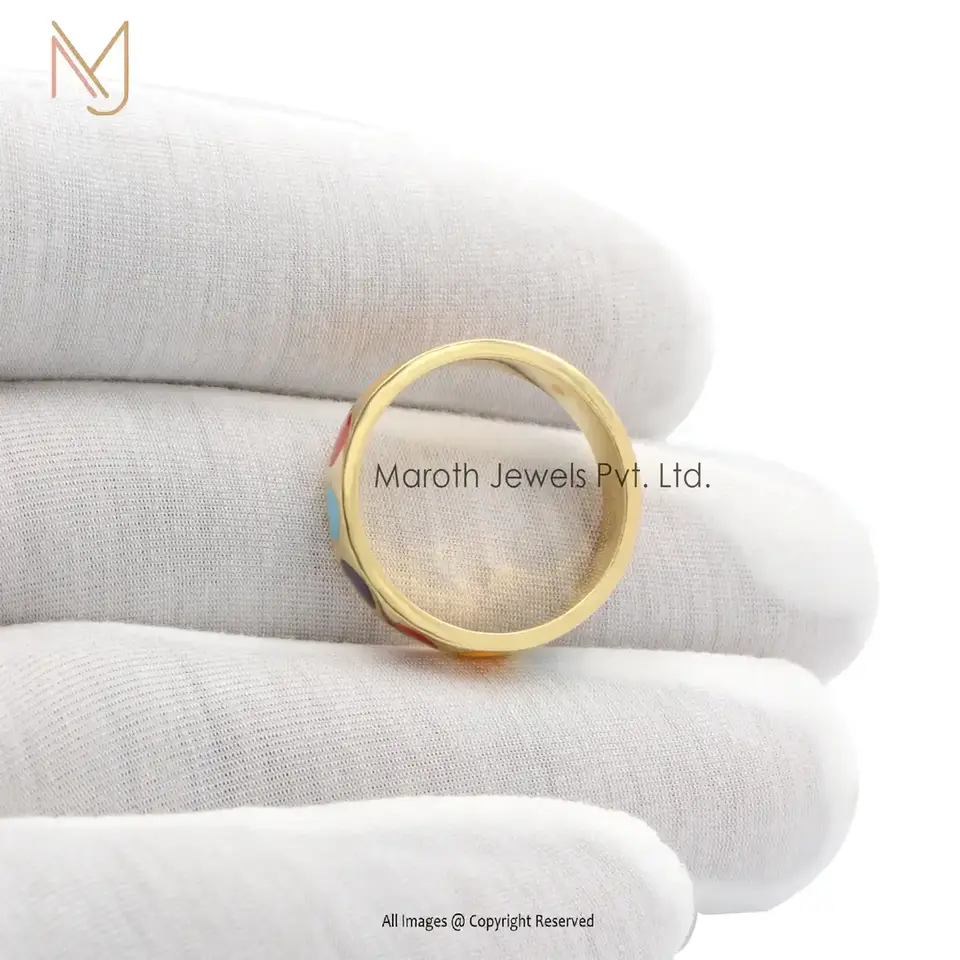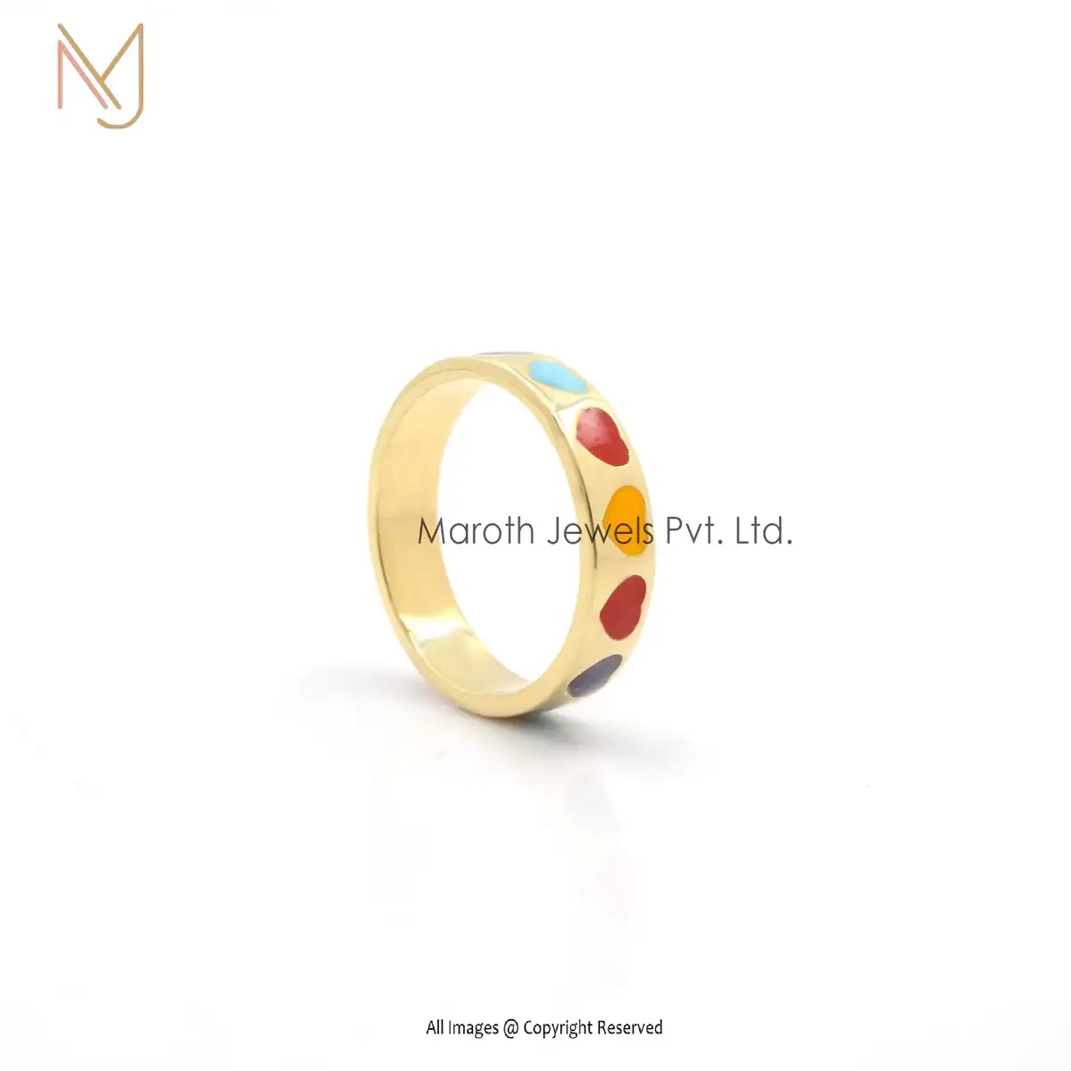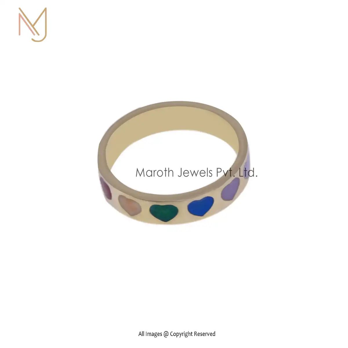 14k Yellow Gold Heart Multi Enamel Ring Jewelry Manufacturer