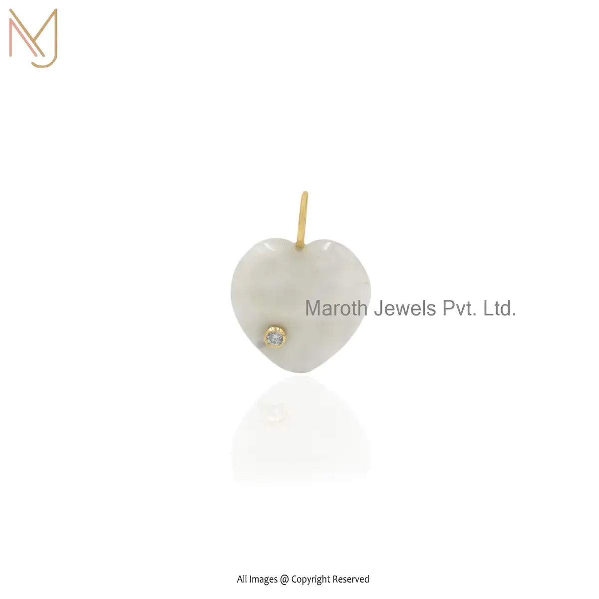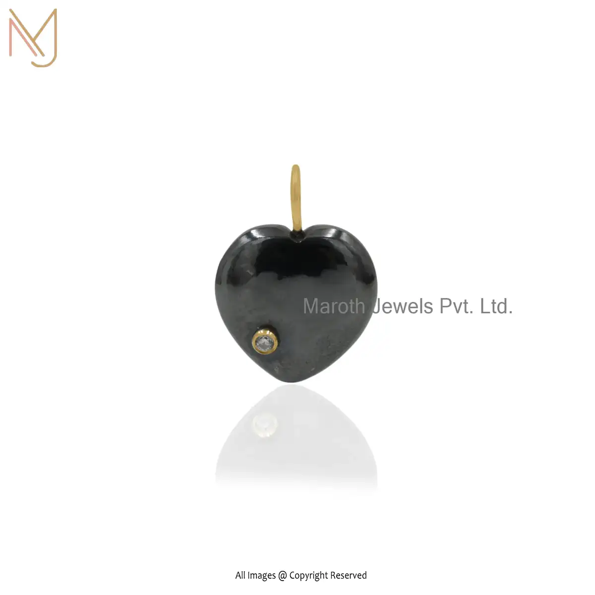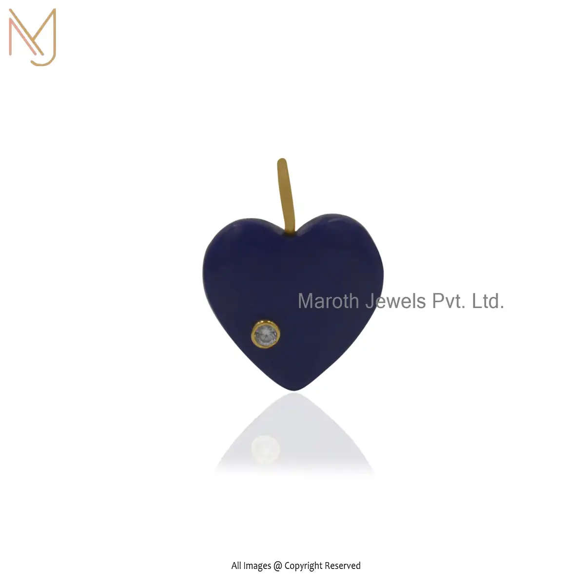 14K Yellow Gold Heart Turquoise & White Topaz Pendants Crustom Jewelry
