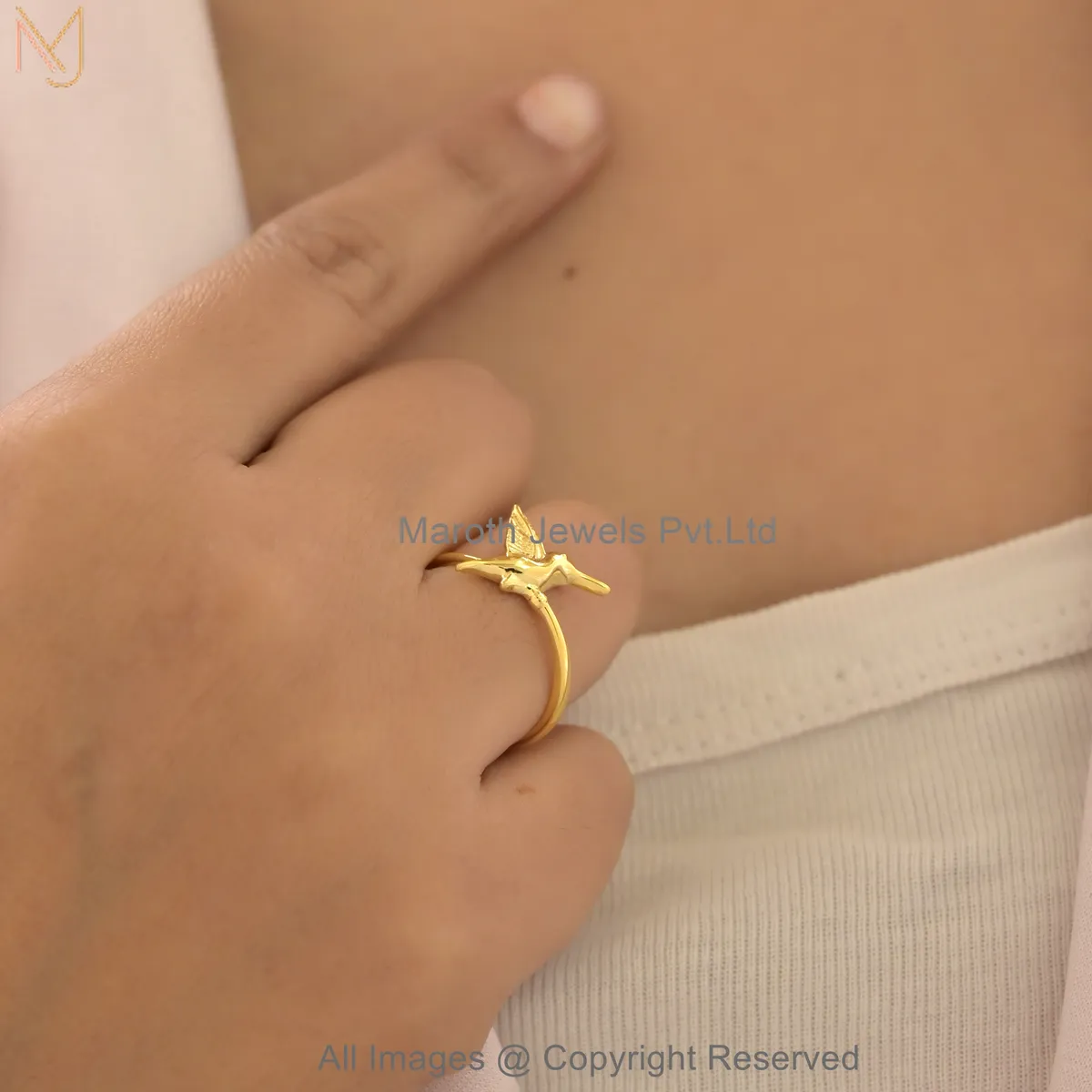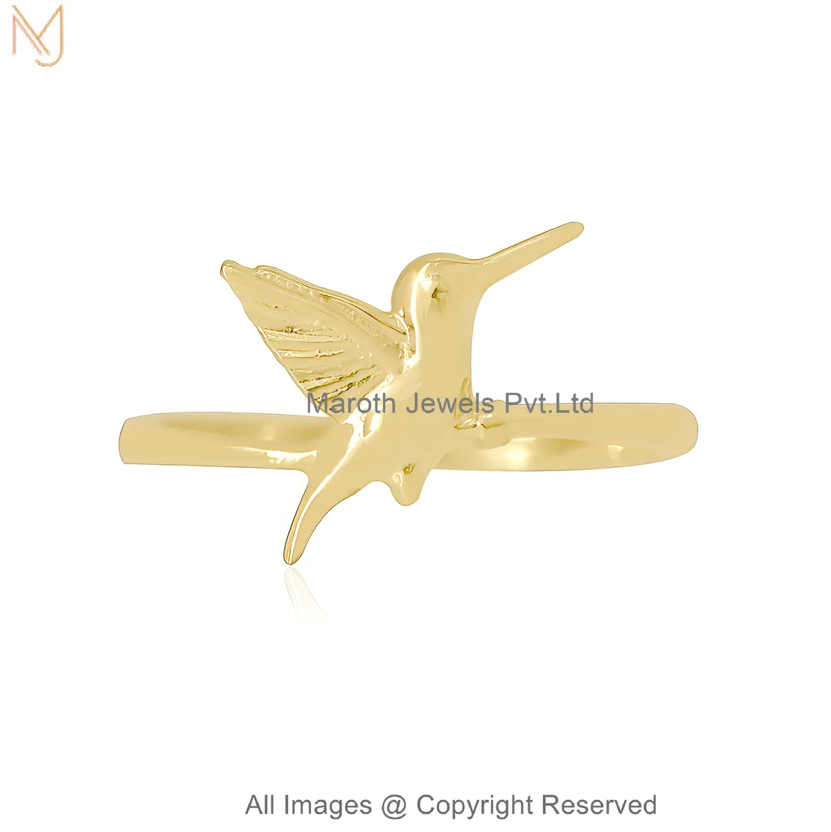 14K Yellow Gold Hummingbird Charm Ring Custom Jewelry