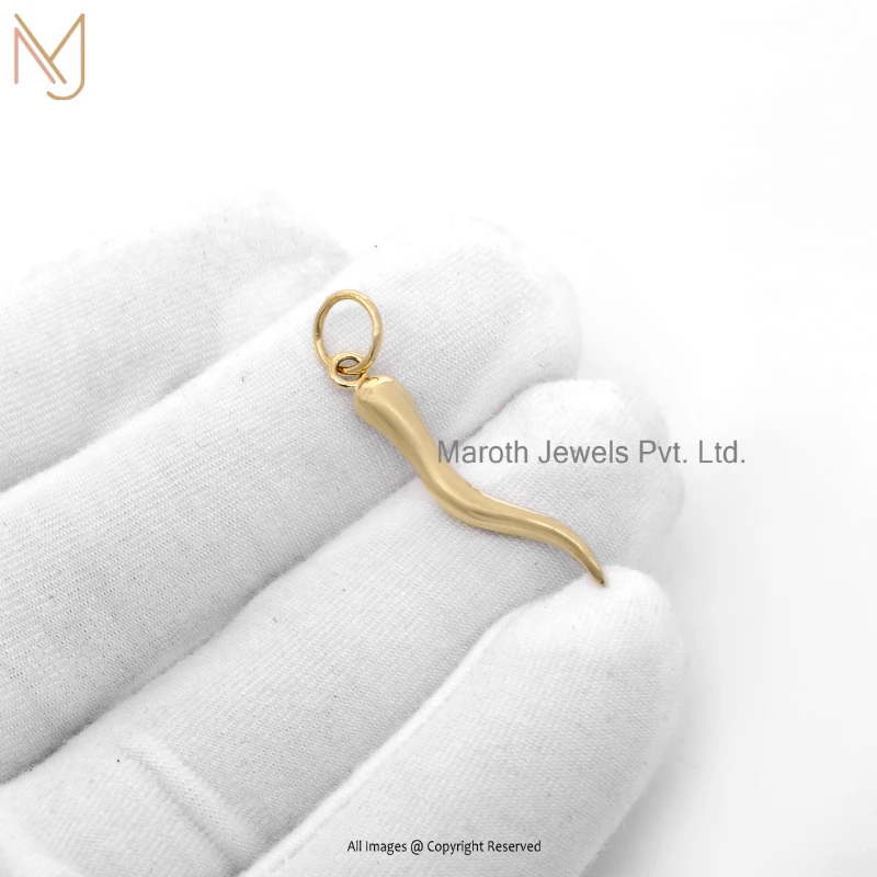 14K Yellow Gold Italian Horn Design Pendant Jewelry Supplier