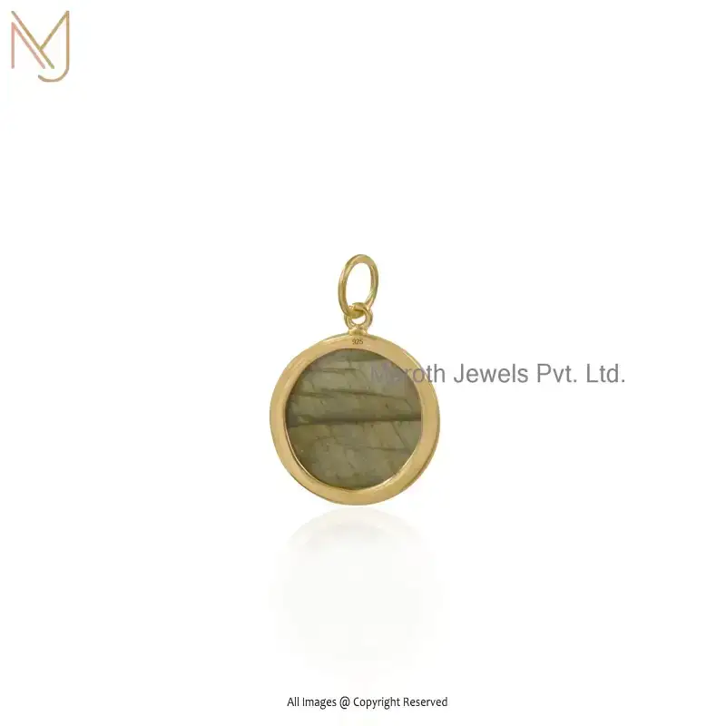 14K Yellow Gold Labradorite & Cubic Zircon Round Ball Gemstone Pendant Custom Jewelry
