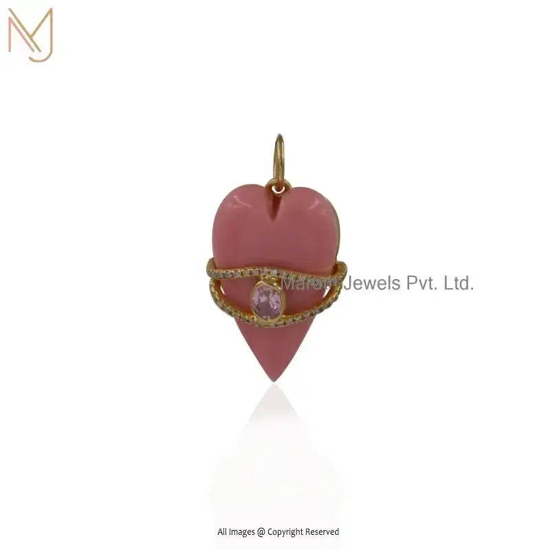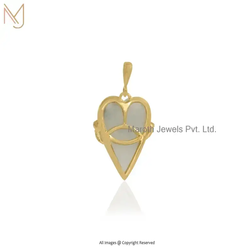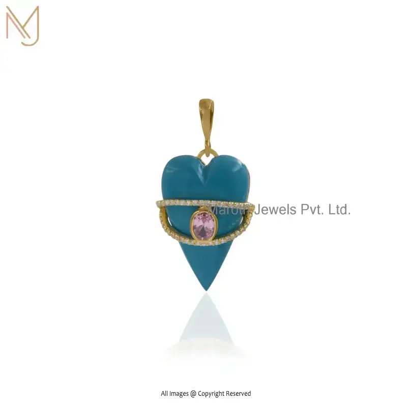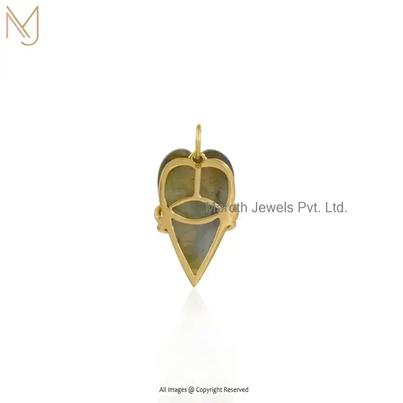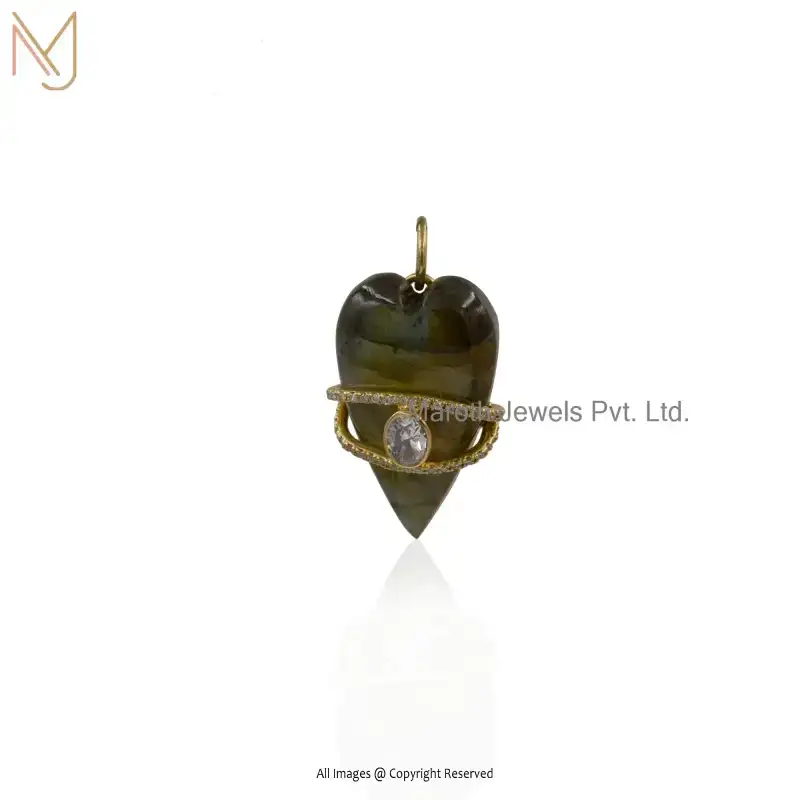 14K Yellow Gold Labradorite & Moissanite & Blue CZ Evil Eye Gemstone Carved Heart Pendant USA