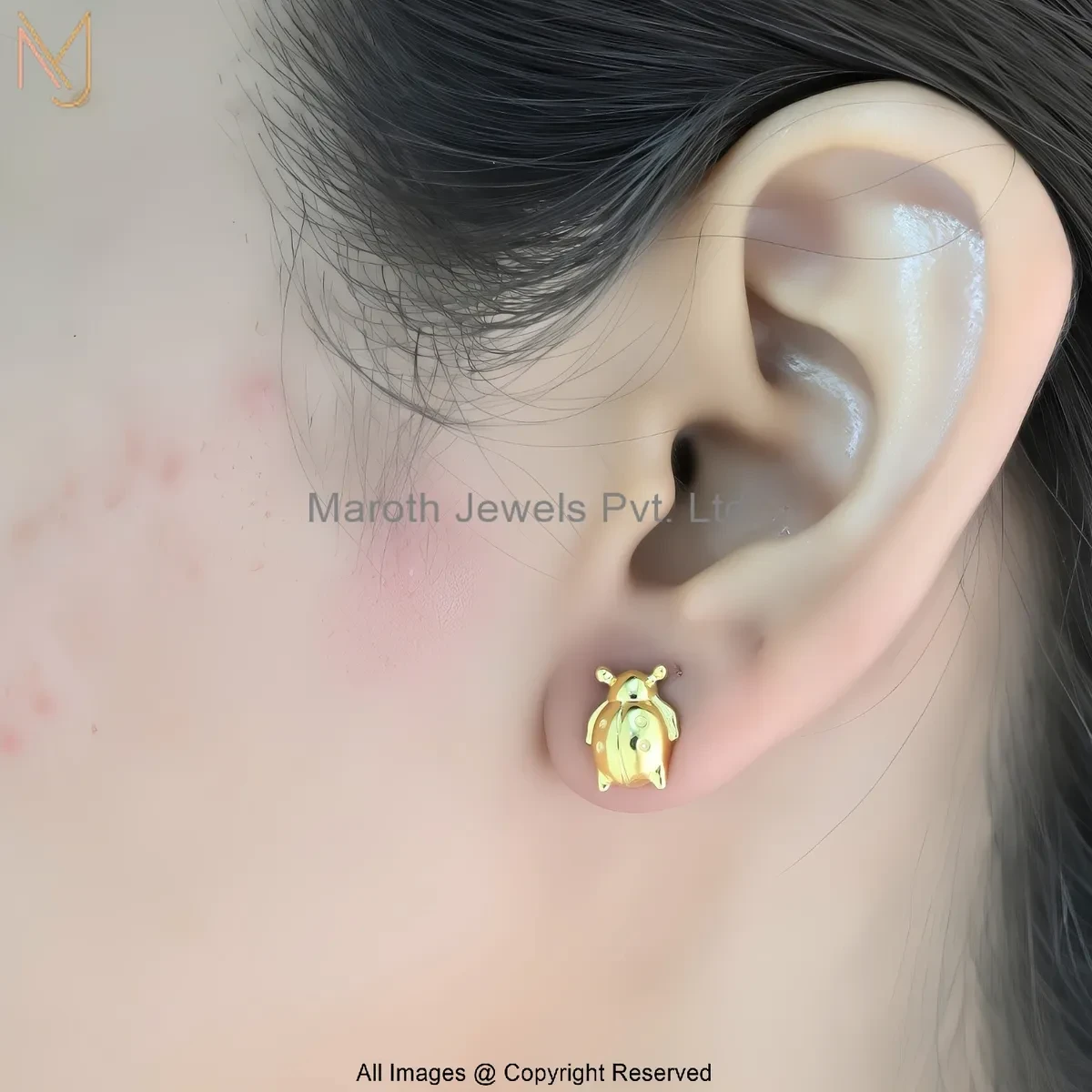 14K Yellow Gold Ladybug Stud Earring Manufacturer