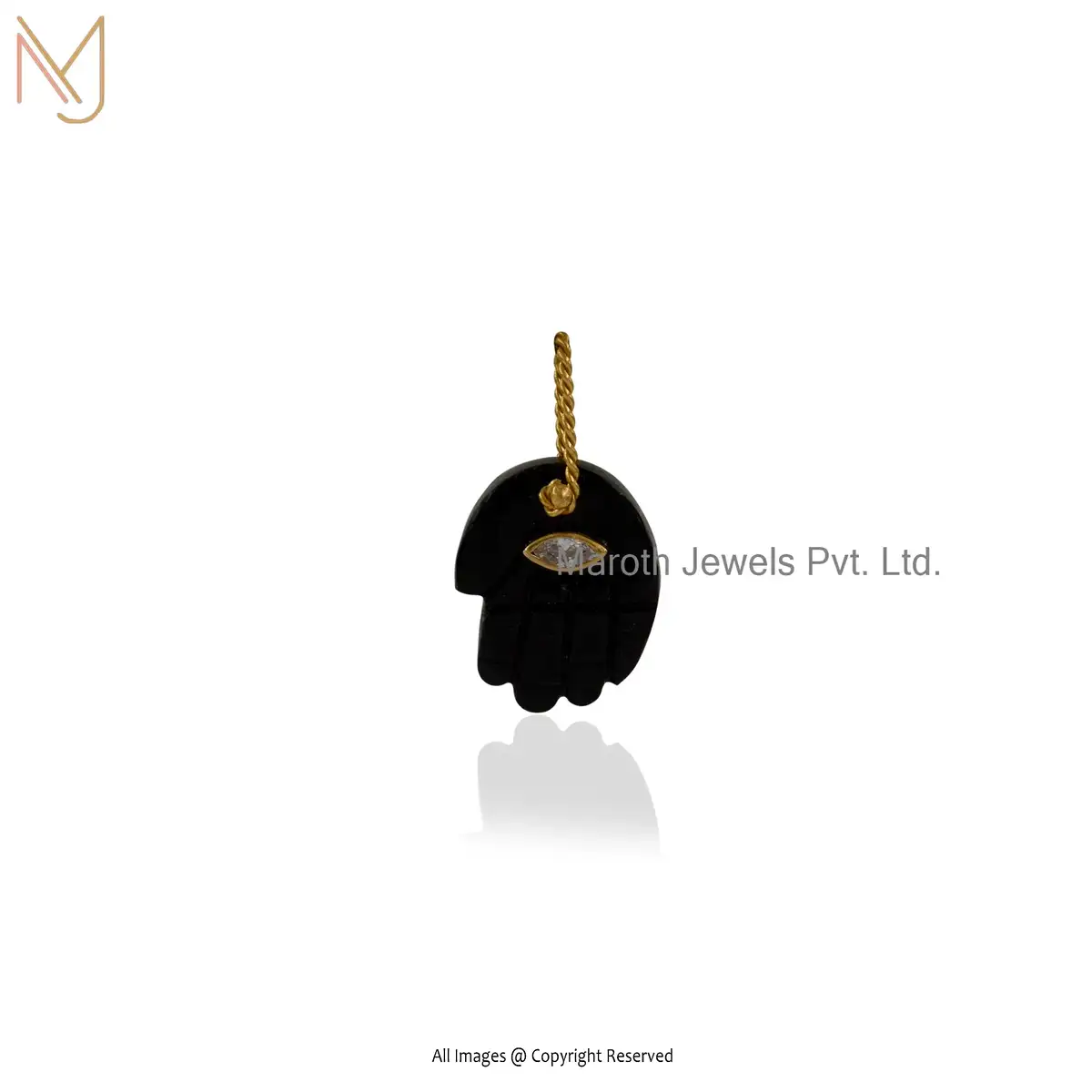 14K Yellow Gold Lapis Lazuli & White Topaz Figa Pendant Jewelry Supplier