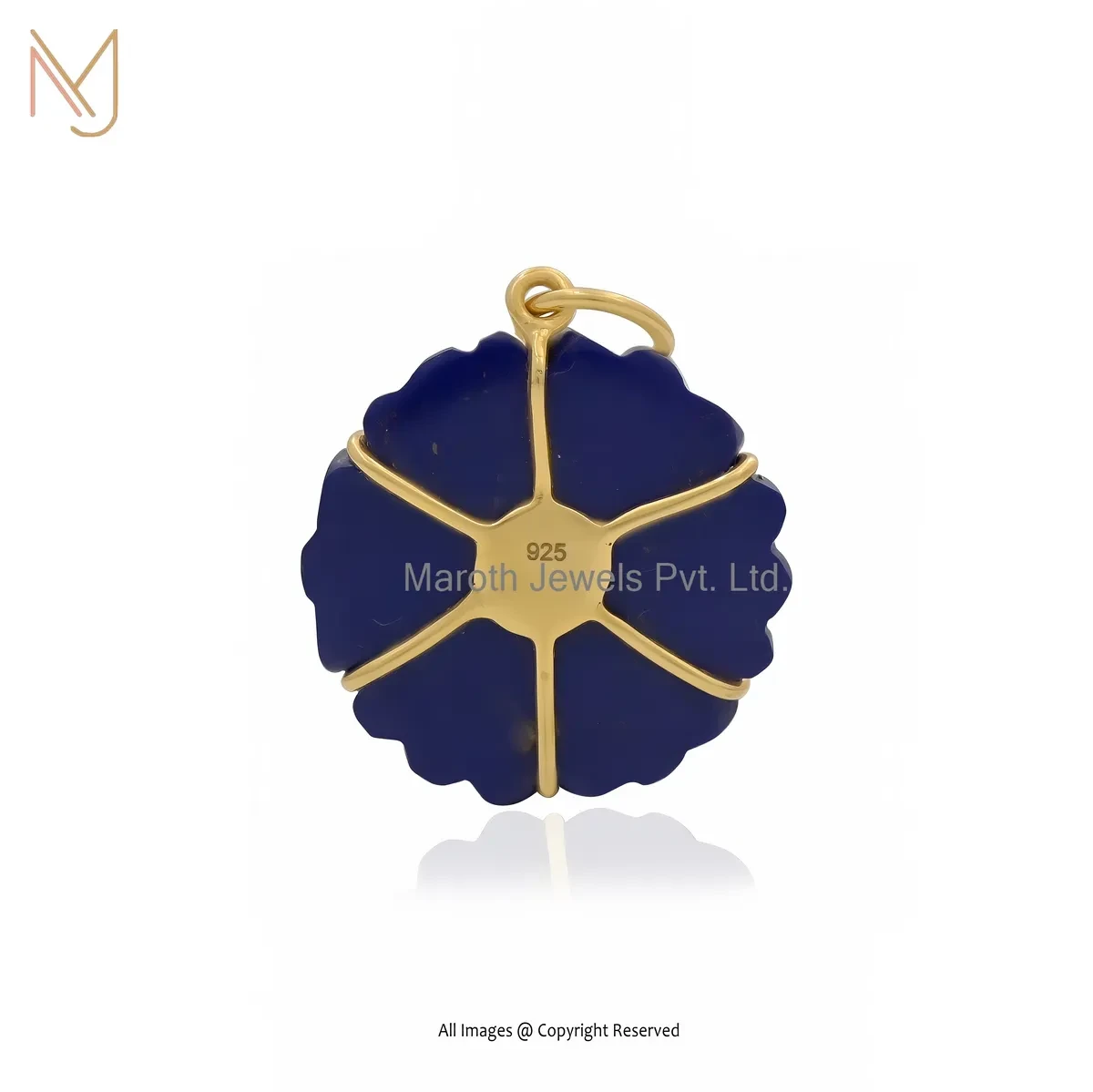14K Yellow Gold Lapiz Lazuli & Blue Cubic Zircon Flower Pendant Jewelry Supplier