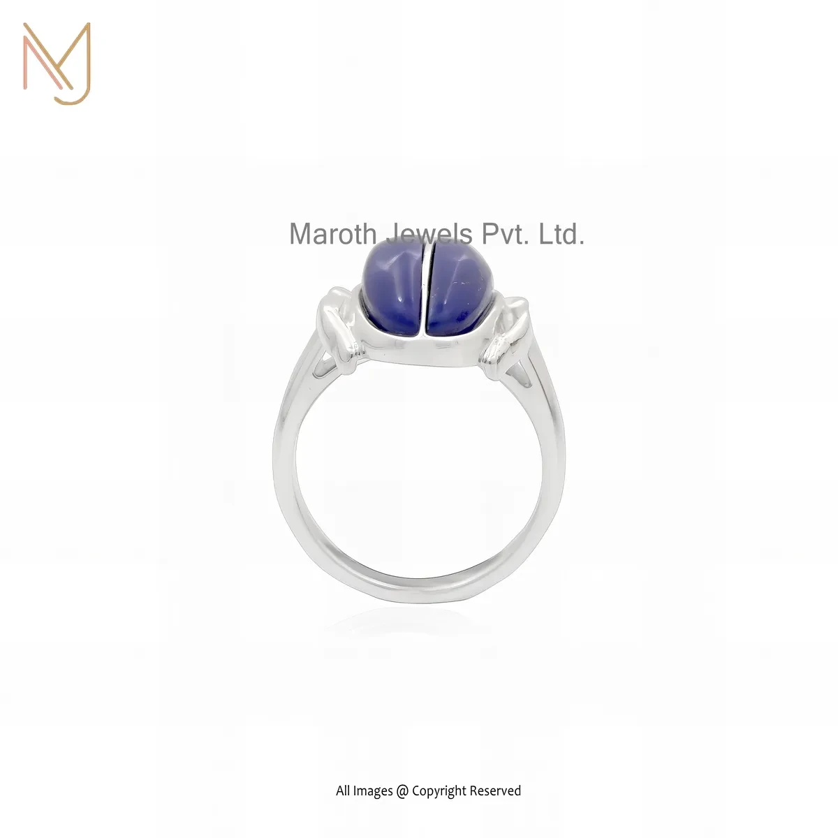 14K Yellow Gold Lapiz Lazuli Scarab Ring Custom Jewelry