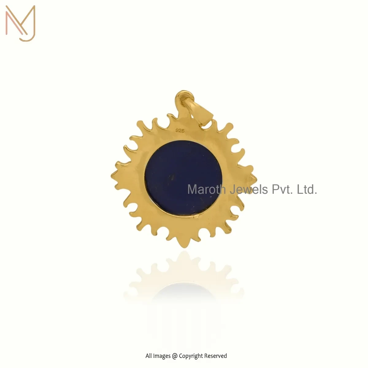 14K Yellow Gold Lapiz Lazuli Sun Disc Pendant Custom Jewelry