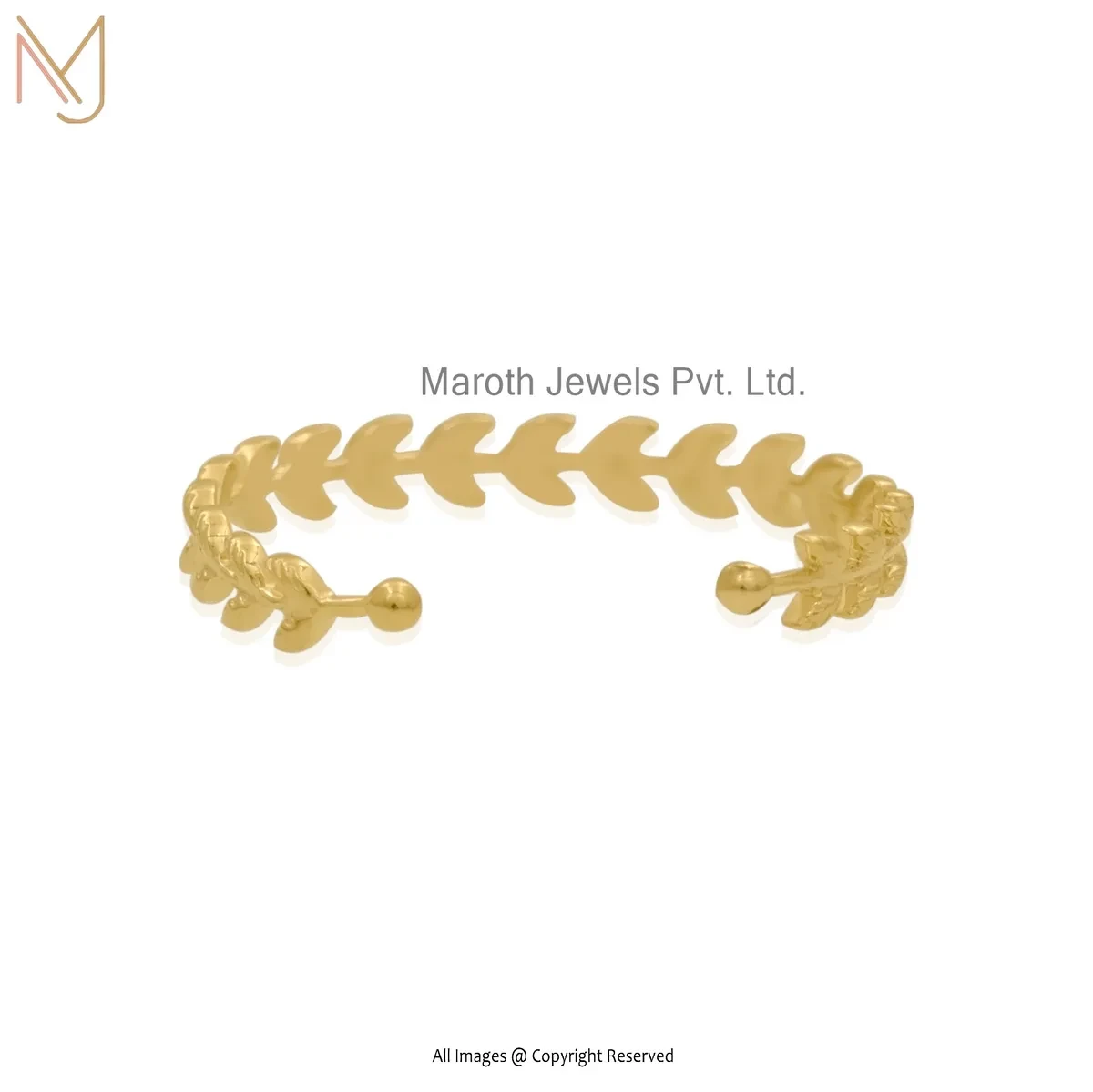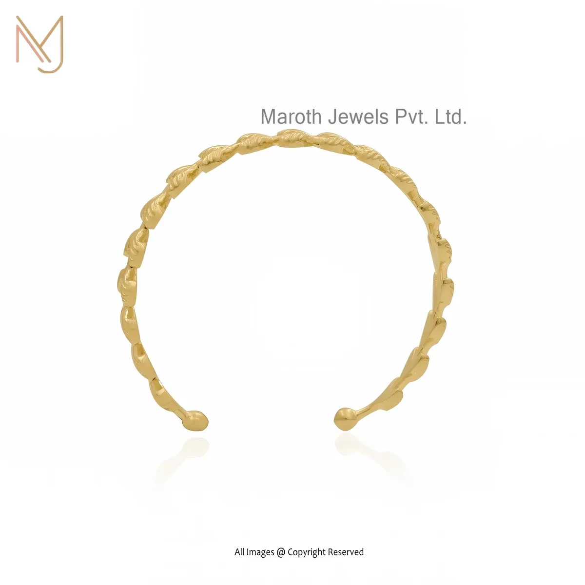 14K Yellow Gold Leaf Cuff Bangle Jewelry Supplier