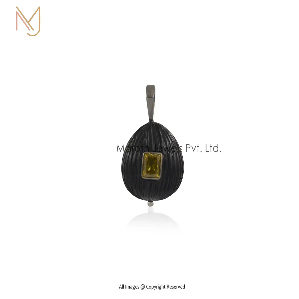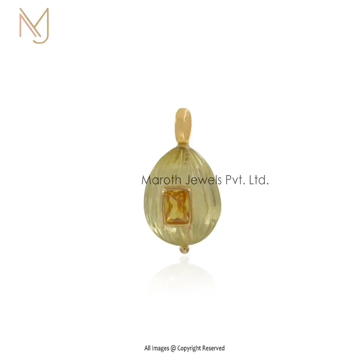 14K Yellow Gold Lemon Quartz Small Stone Yellow Topaz Stons Carved Drop Pendant Manufacturer