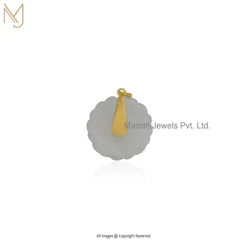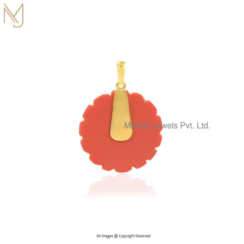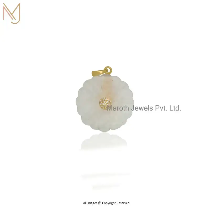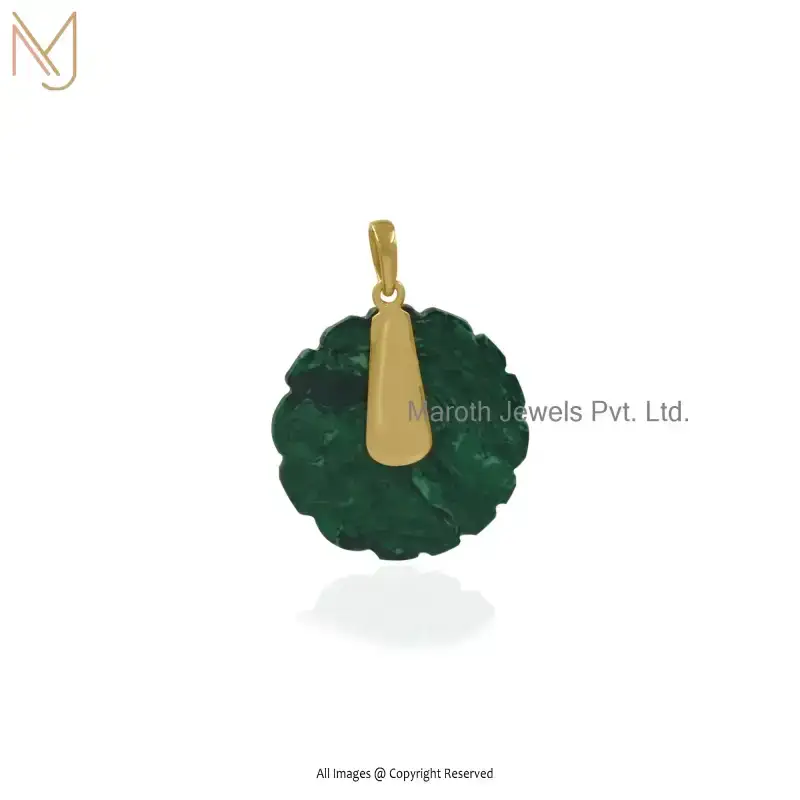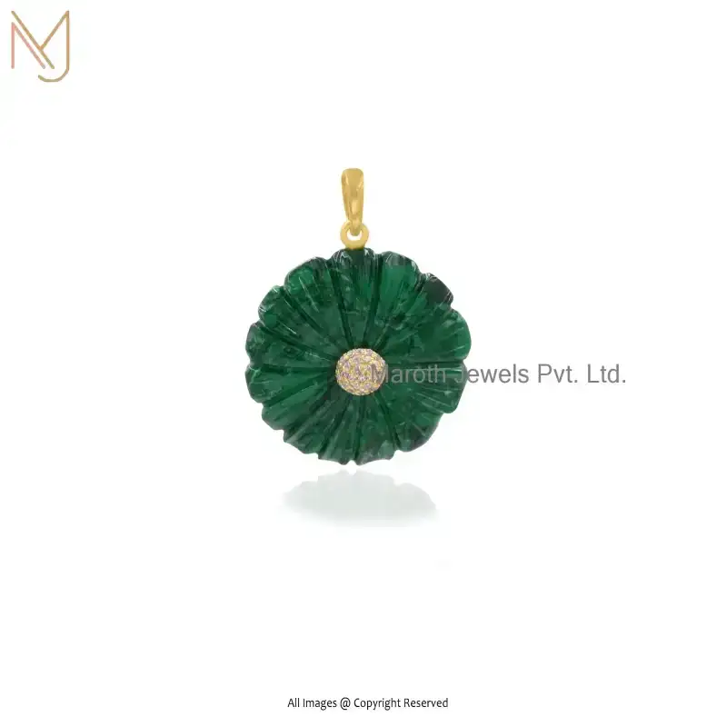 14K Yellow Gold Malachite And Pink CZ Flower Gemstone Pendant Custom Jewelry