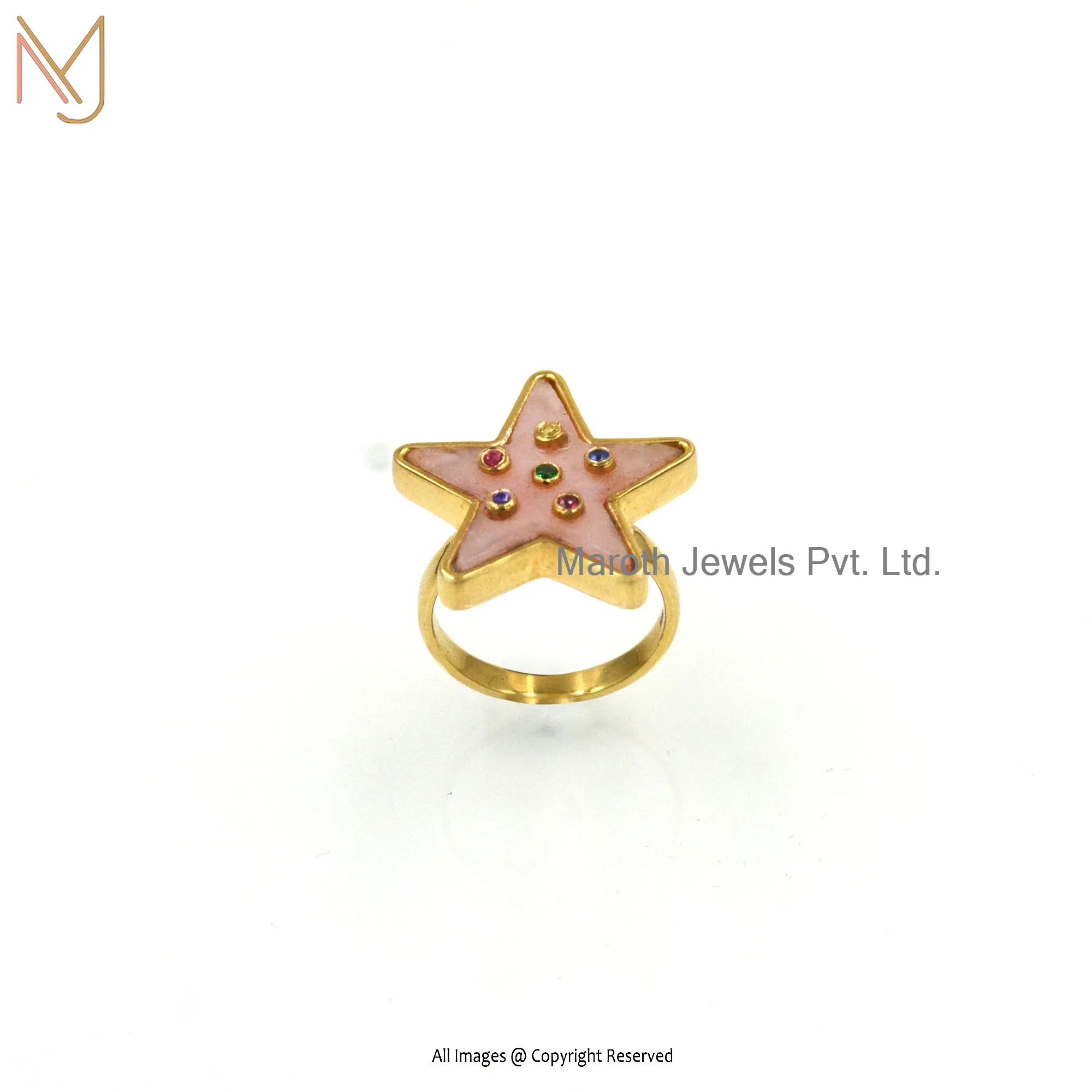 14k Yellow Gold Malachite & CZ Multi Gemstone Star Ring Jeweliry Supplier