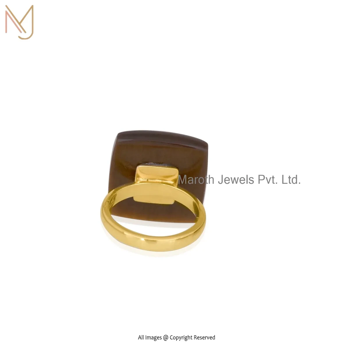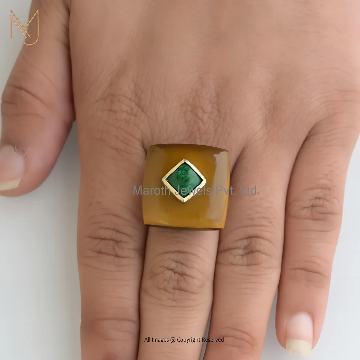 14K Yellow Gold Malachite Gemstone Tiger Eye Ring Custom Jewelry
