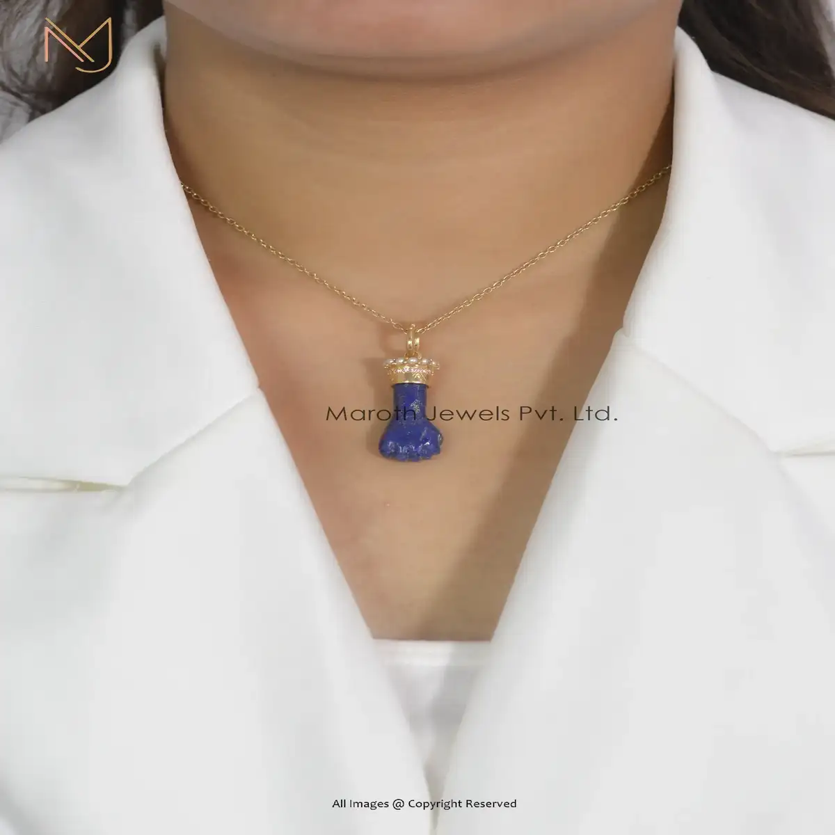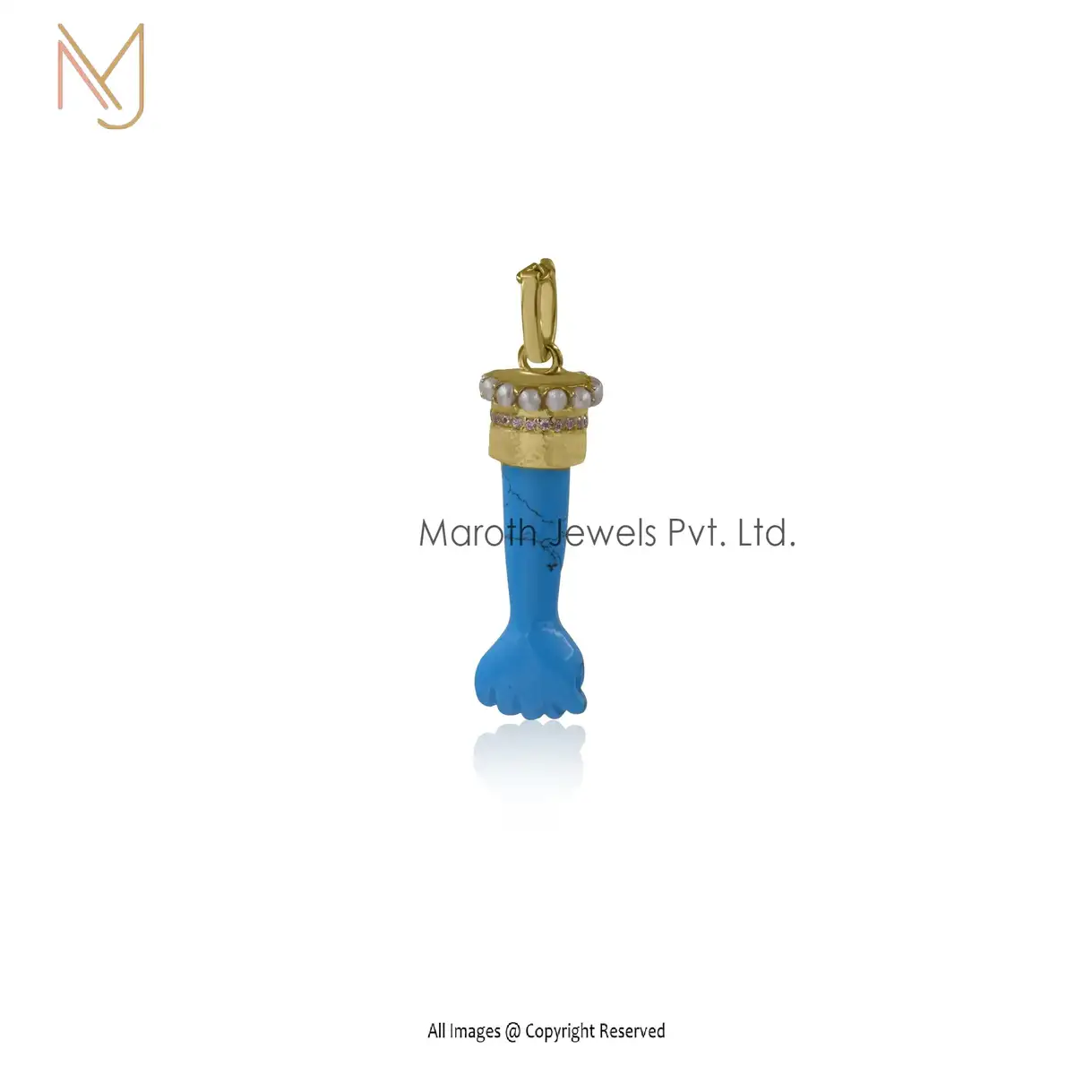 14K Yellow Gold Malachite & Pearl And Pink CZ Figa Pendant Jewelry USA
