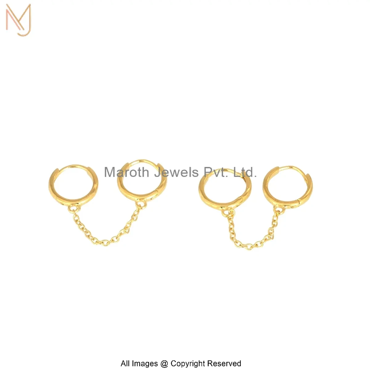 14K Yellow Gold Minimal Chain Linked Hoop Earring Jewelry Supplier