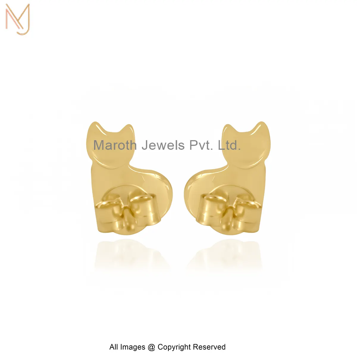 Looking For 14K Yellow Gold Minimal Cute Cat Gold Stud Earrings Manufacturer
