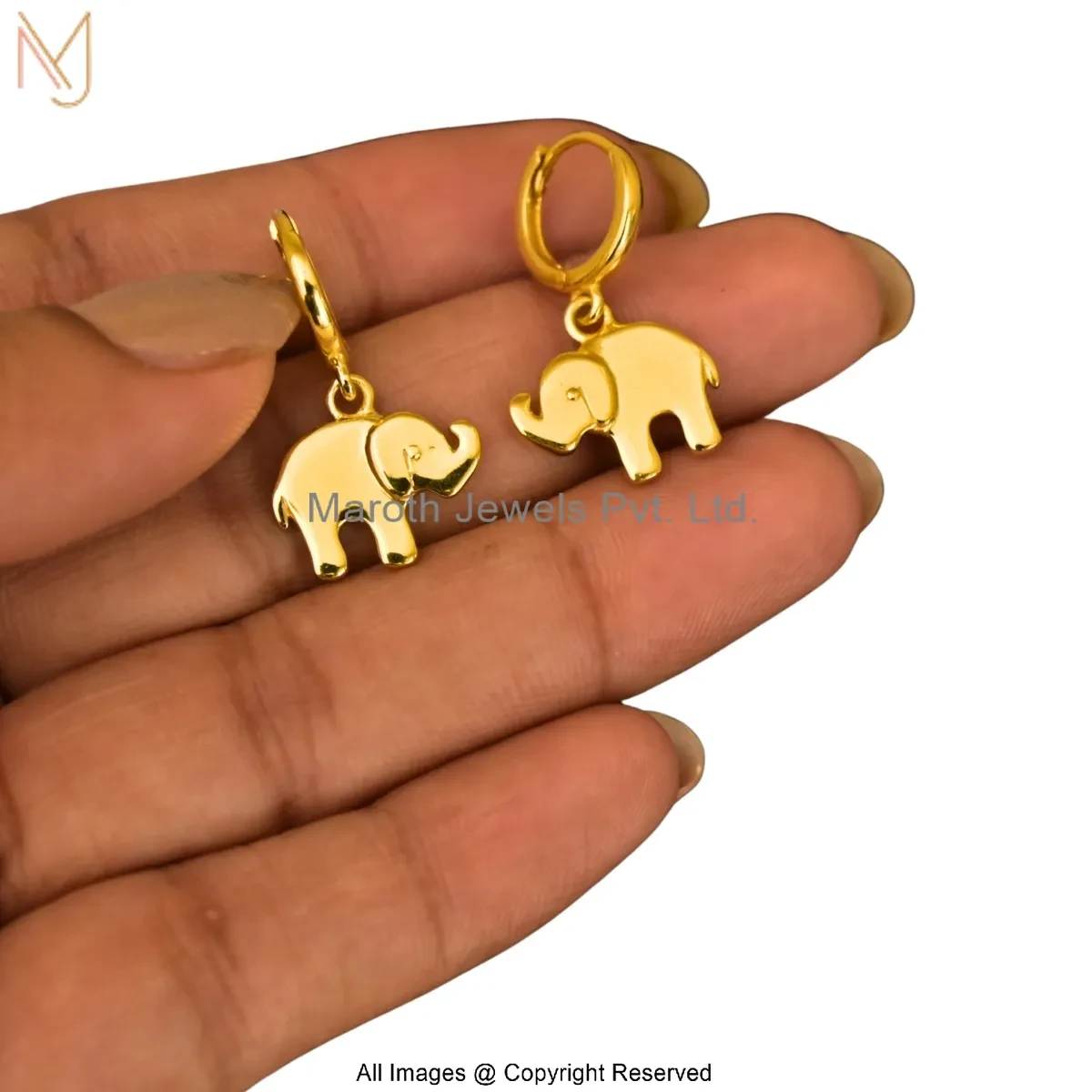14K Yellow Gold Minimal Elephant Charm Hoop Earring Manufacturer