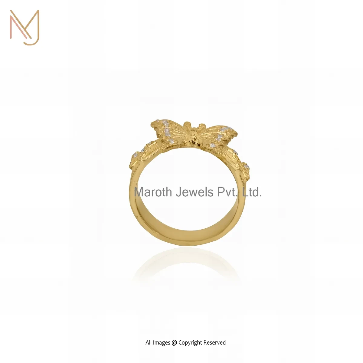 14K Yellow Gold Moissanite Butterfly Ring Custom Jewelry