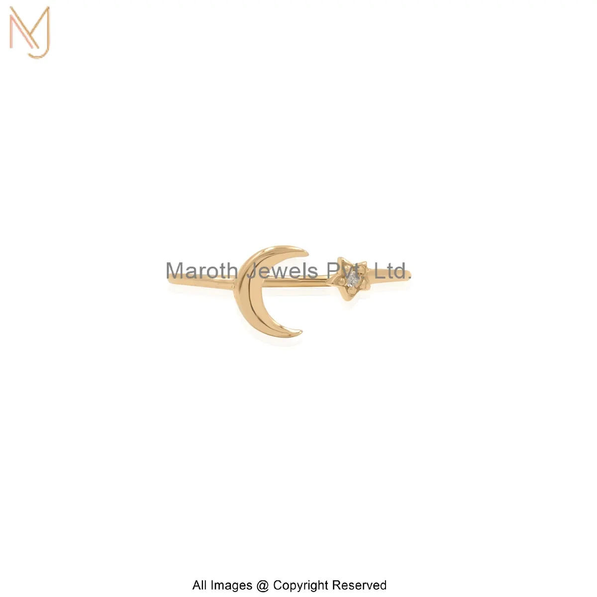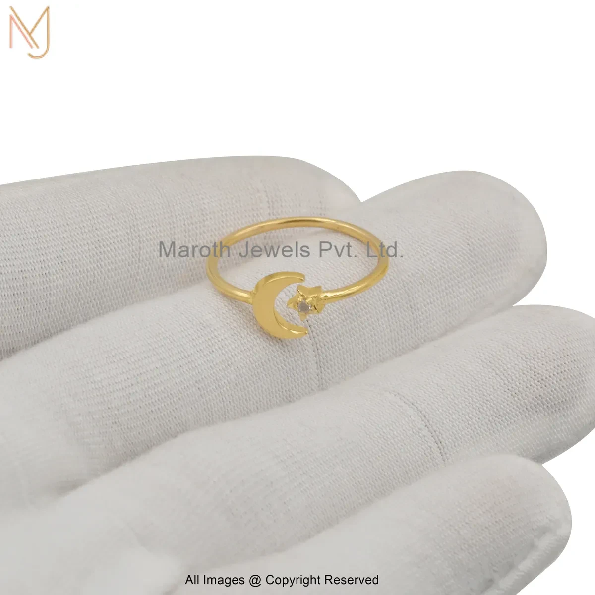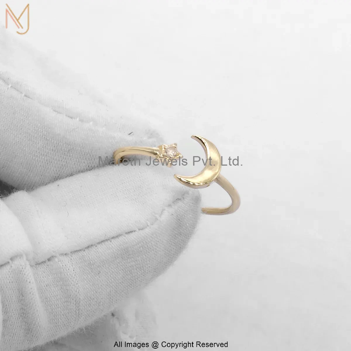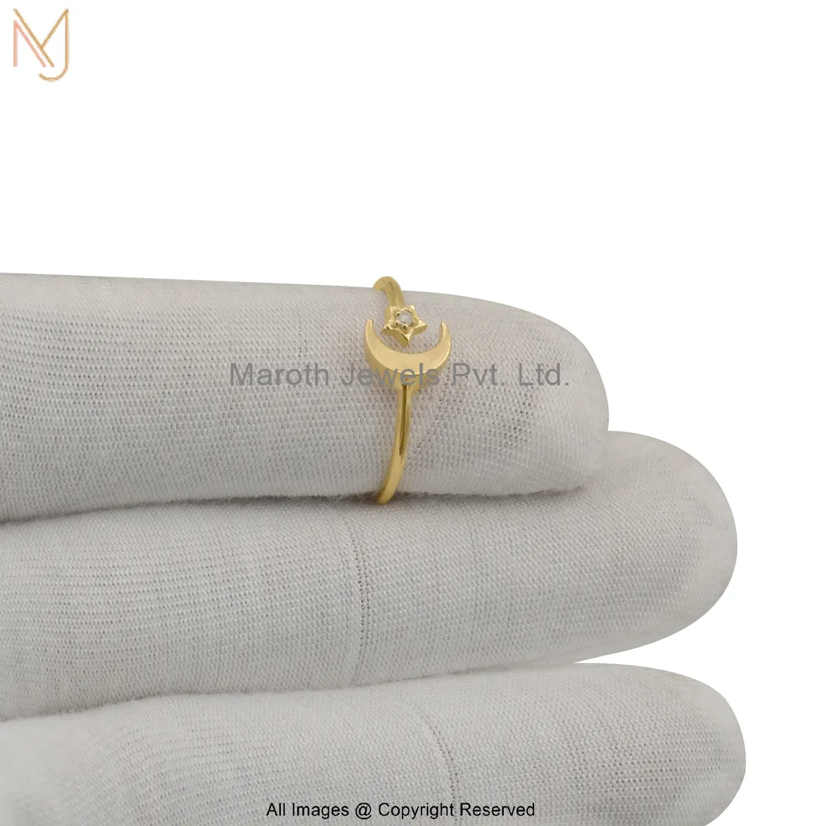 14K Yellow Gold Moissanite Celestial Moon & Star Ring Jewelry Supplier