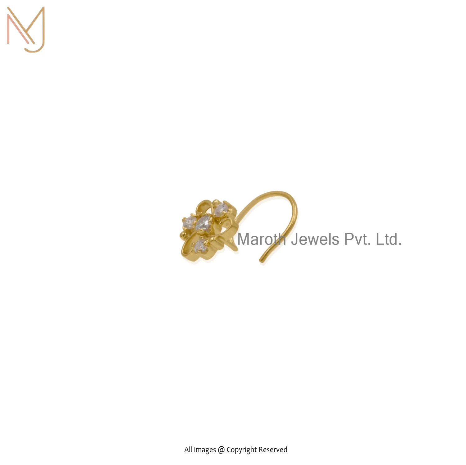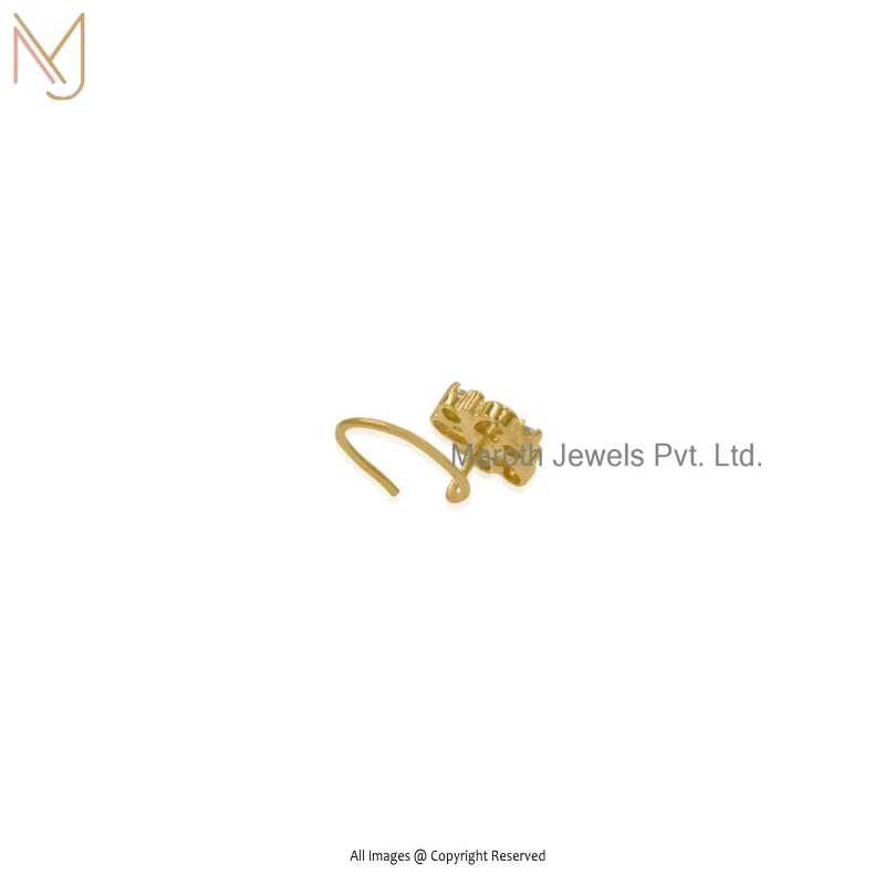 14K Yellow Gold Moissanite & Diamond Nose Pin Piercing Custom Jewelry