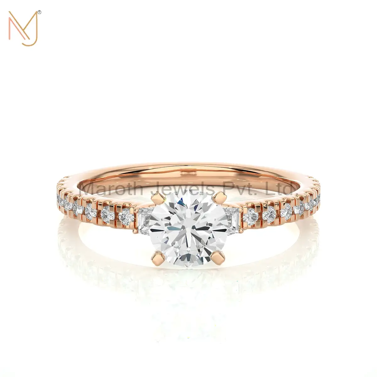 14K Yellow Gold Moissanite Diamond Round Baguette Ring Manufacturer