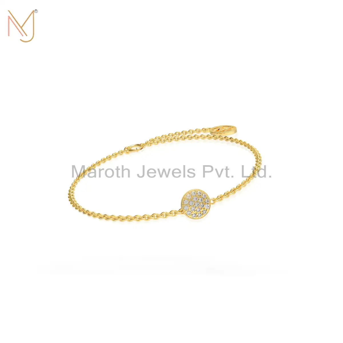 14K Yellow Gold Moissanite Disc Bracelet Custom Jewelry