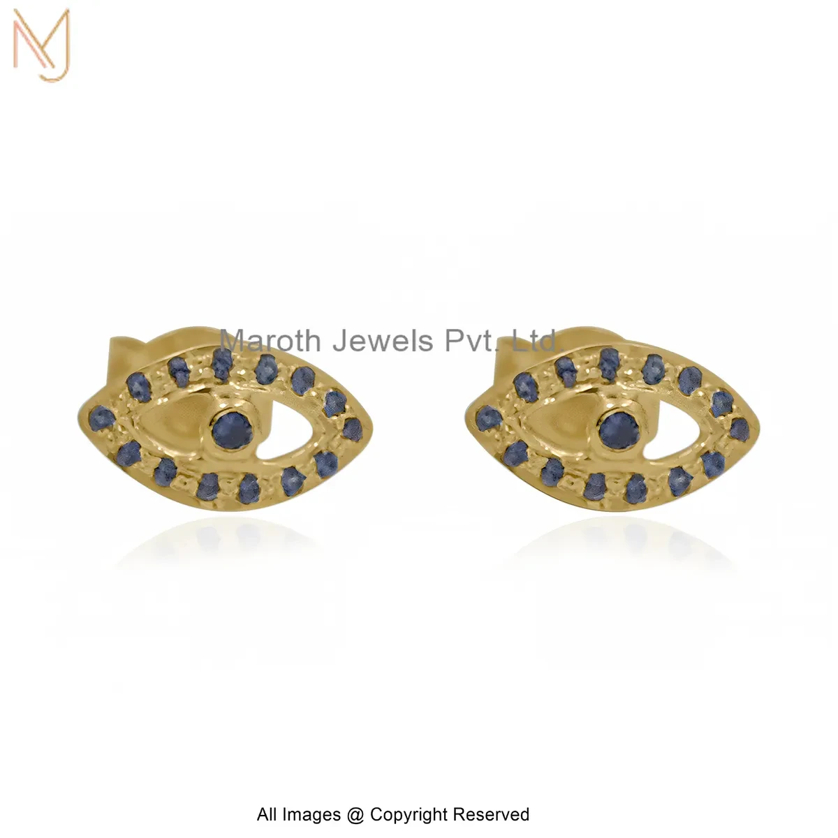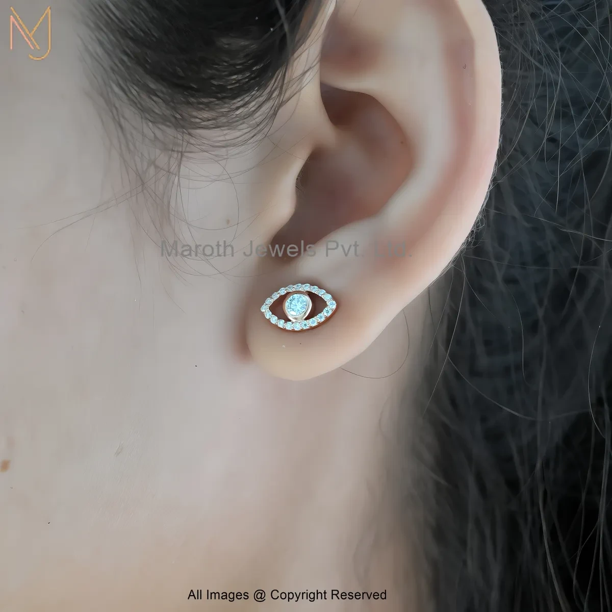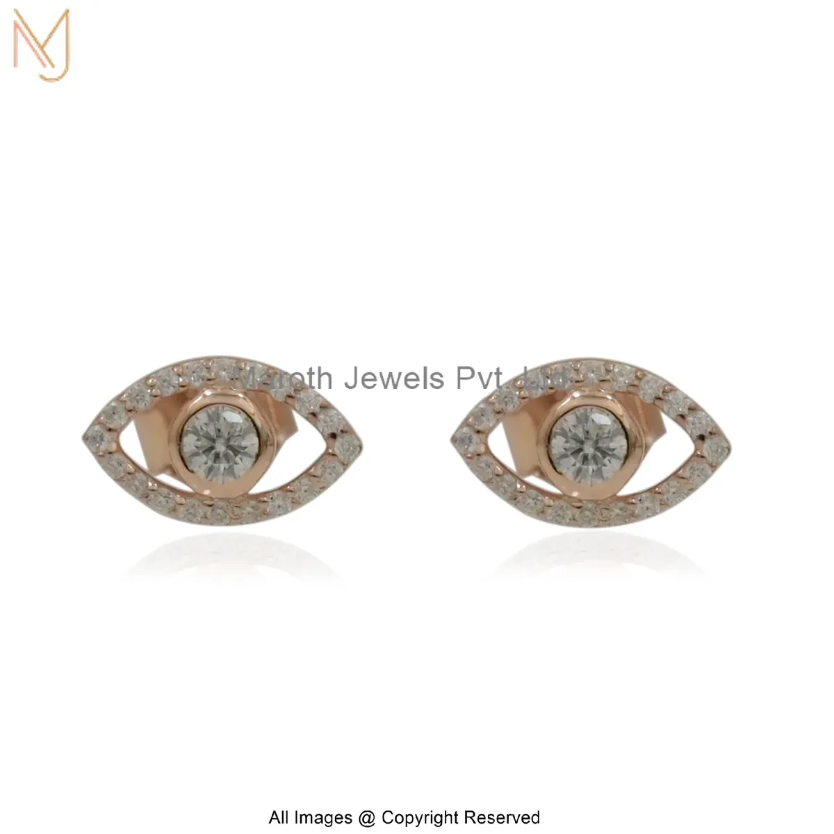 14K Yellow Gold Moissanite Gemstone Evil Eye Stud Earring Manufacturer
