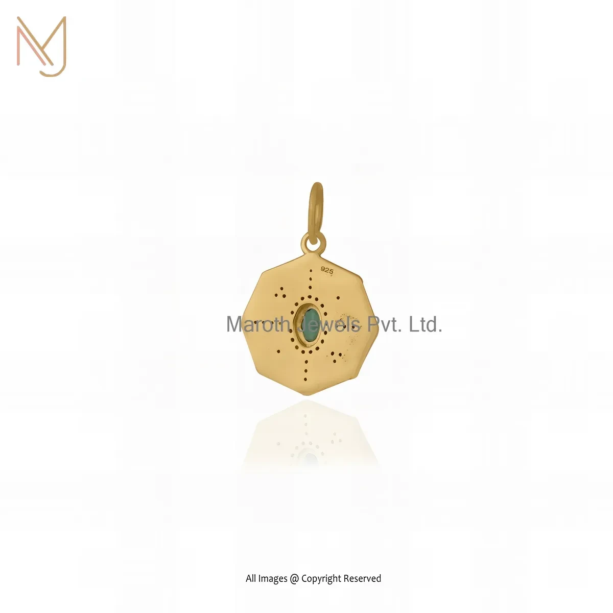 14K Yellow Gold Moissanite & Green Cubic Zircon And Black Enamel Octagon Pendant USA