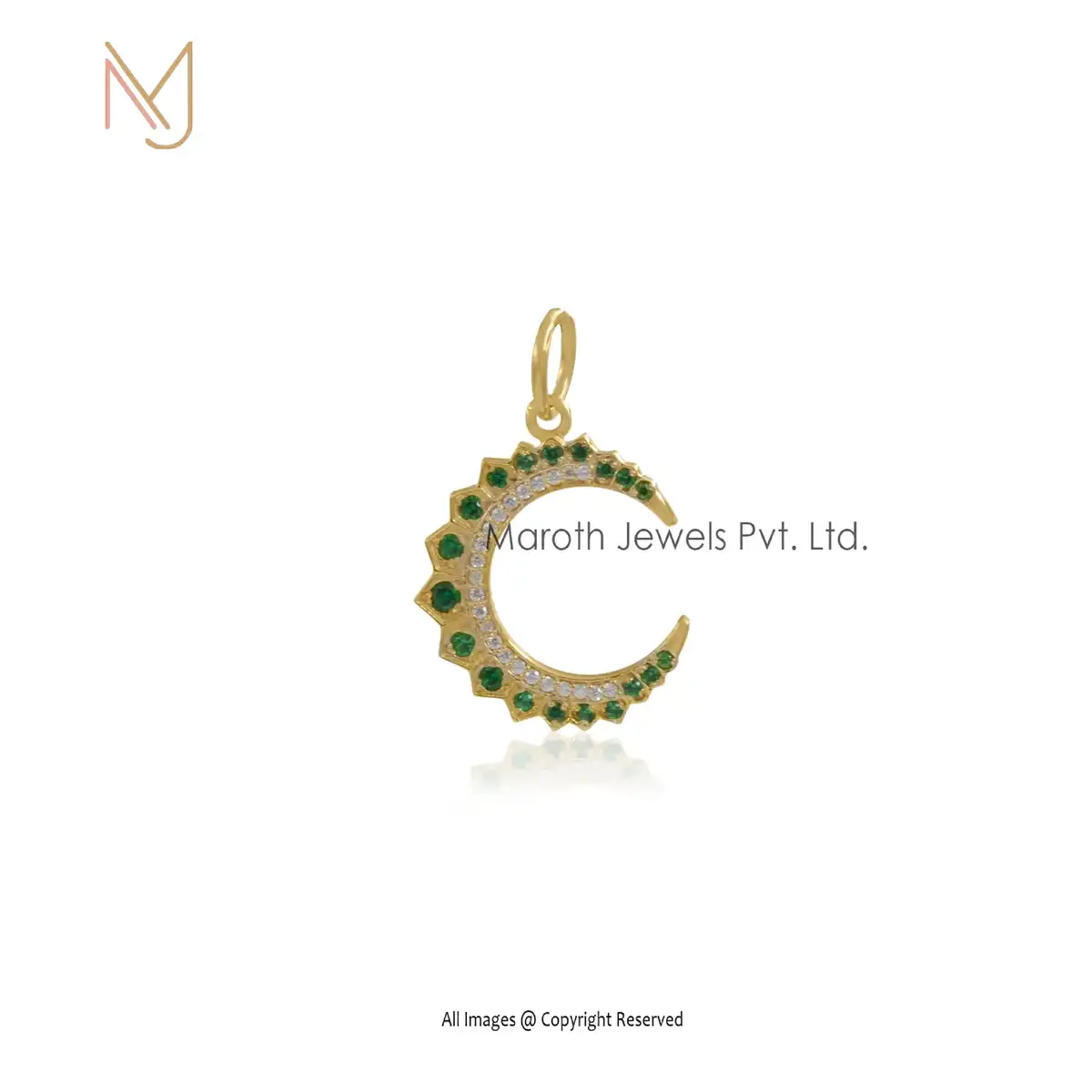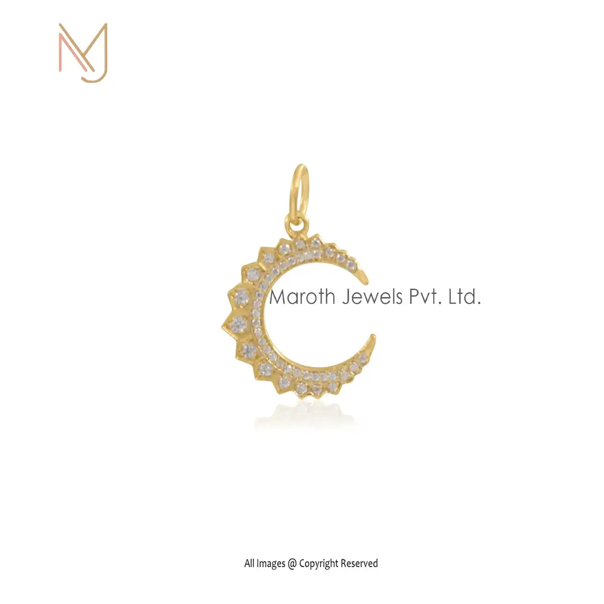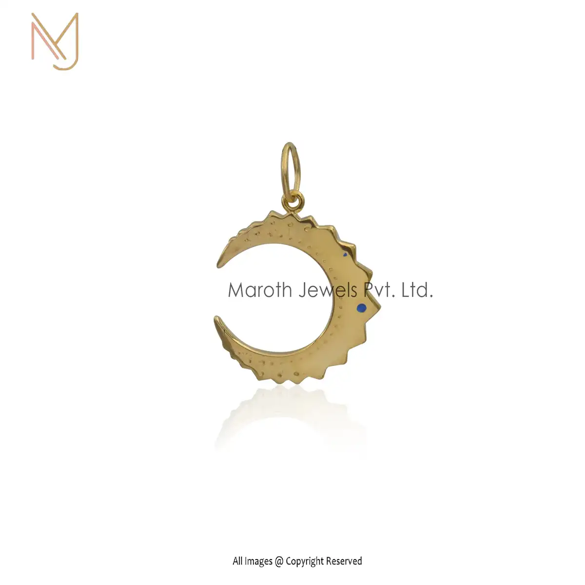 14K Yellow Gold Moissanite & Yellow Sapphire Half Moon Pendant Jewelry Supplier