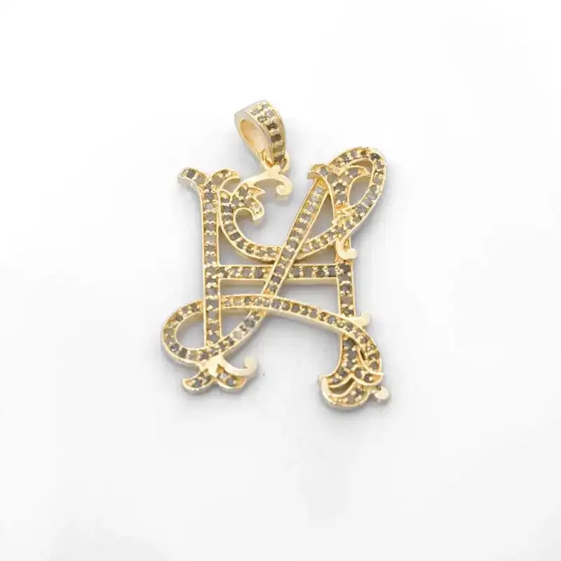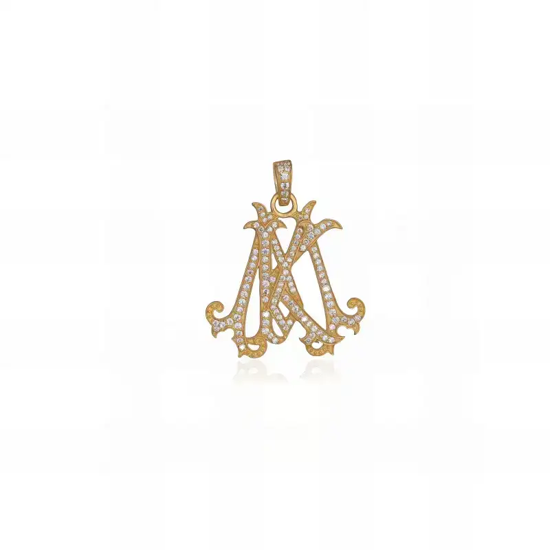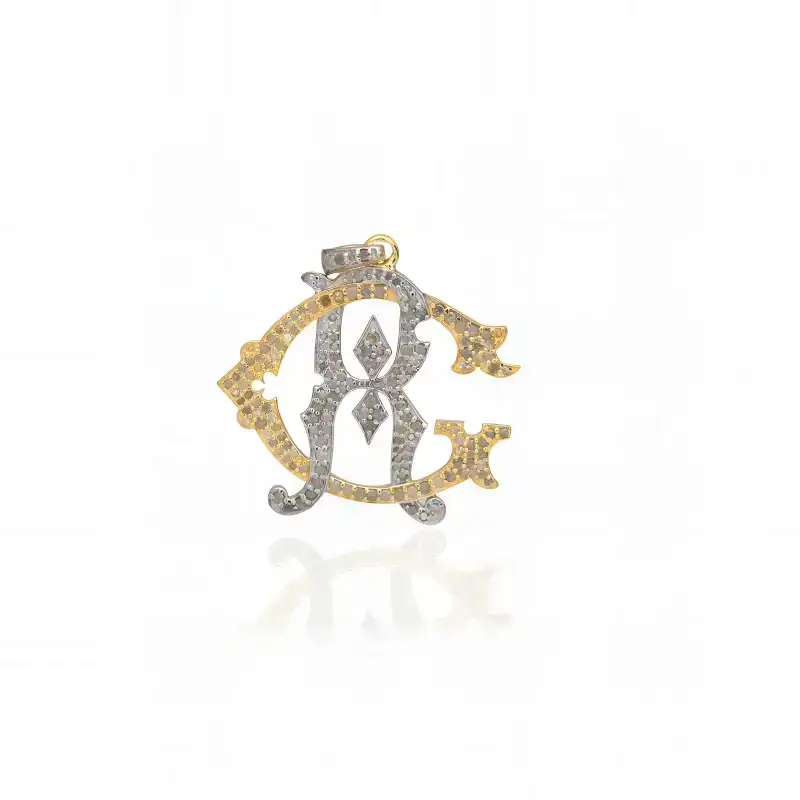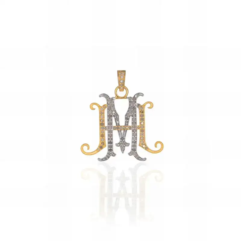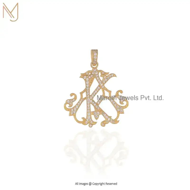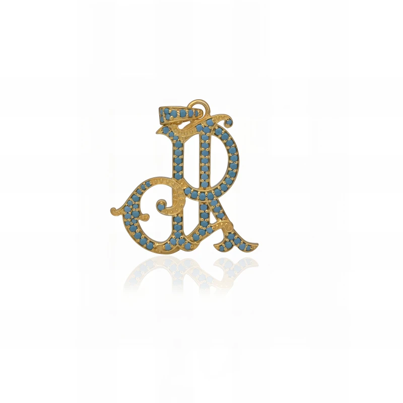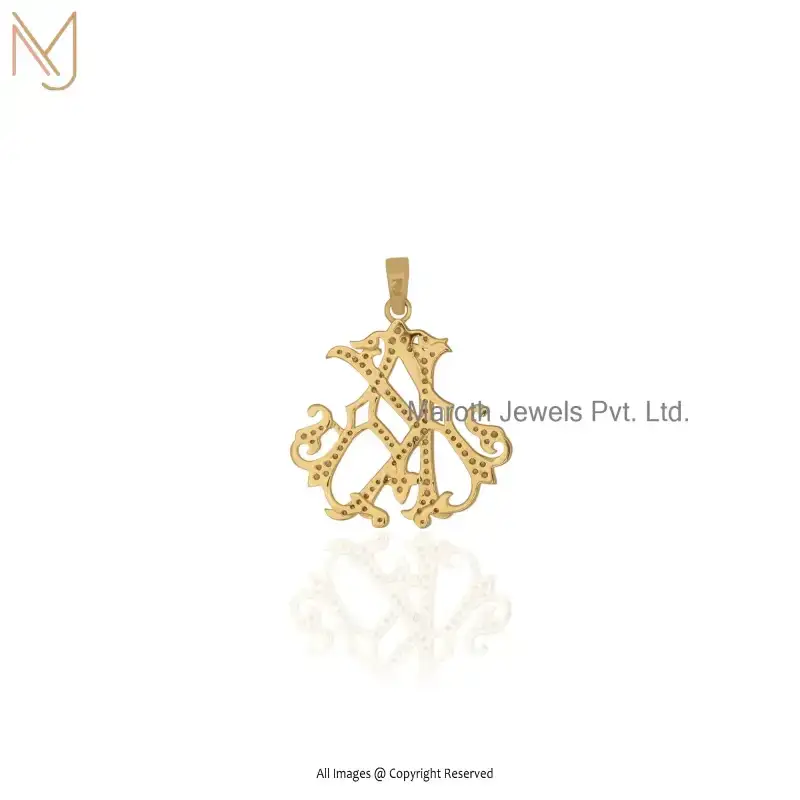14K Yellow Gold Monogram Letter Gemstone Pendant Custom Jewelry