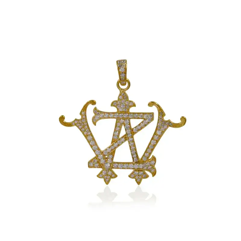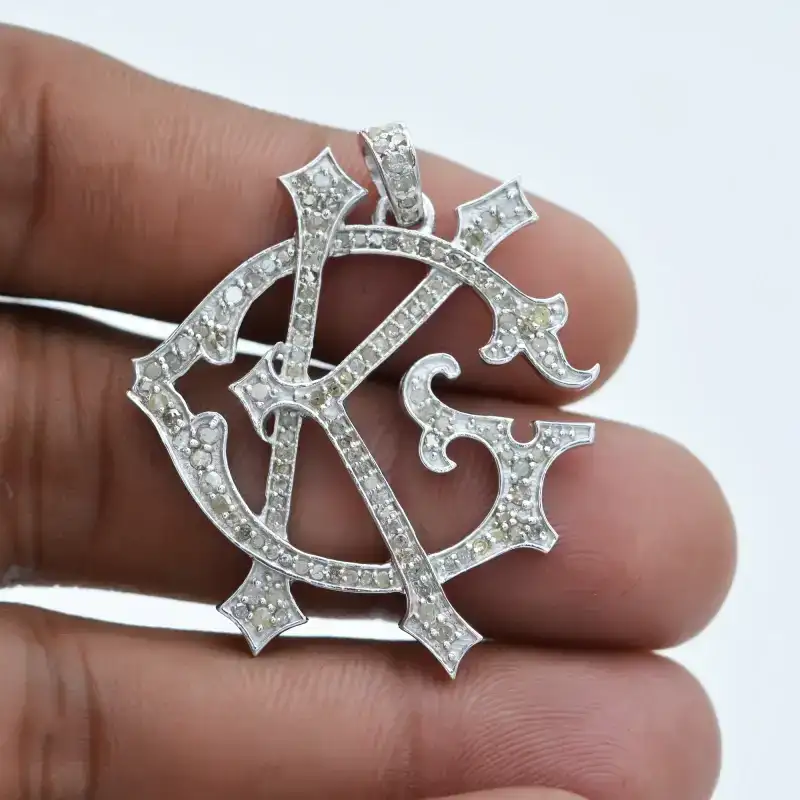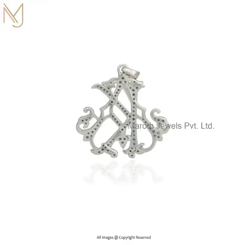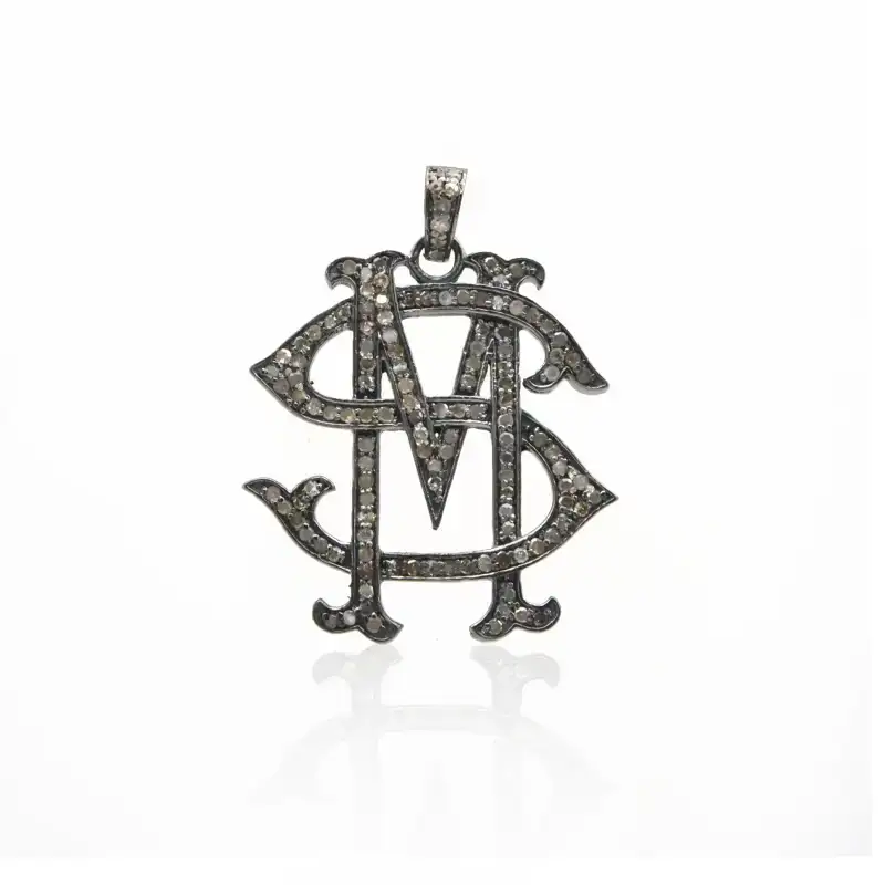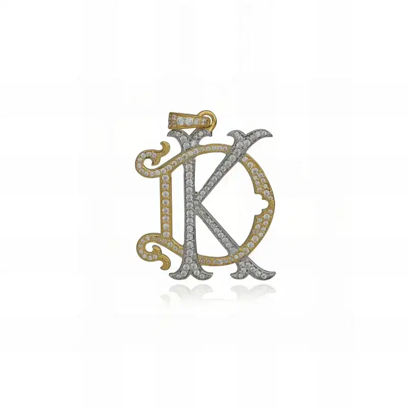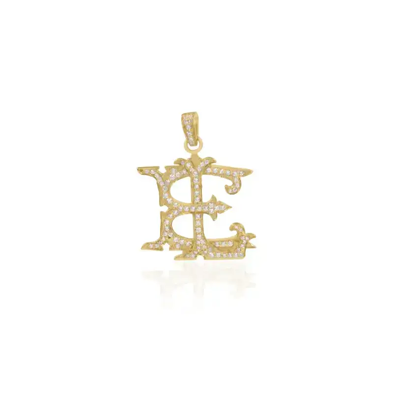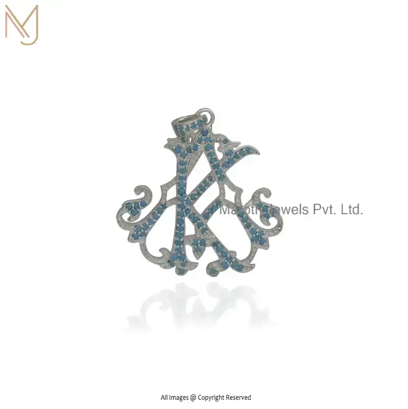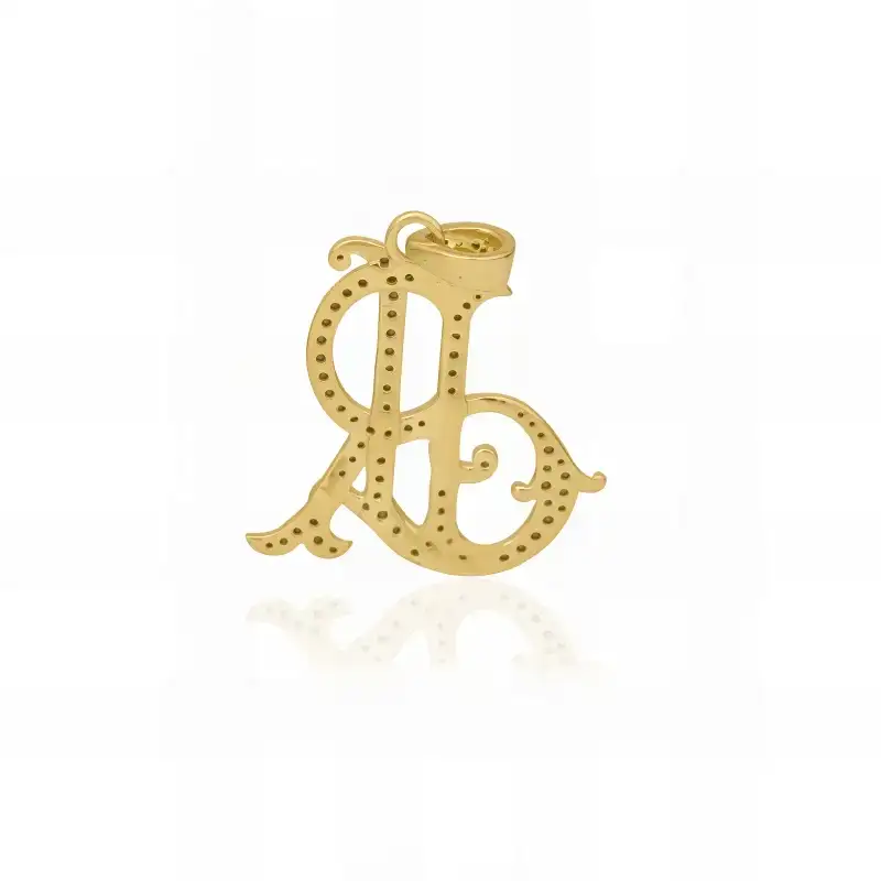 14K Yellow Gold Monogram Letter Gemstone Pendant Custom Jewelry