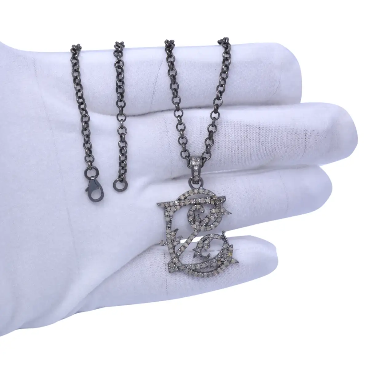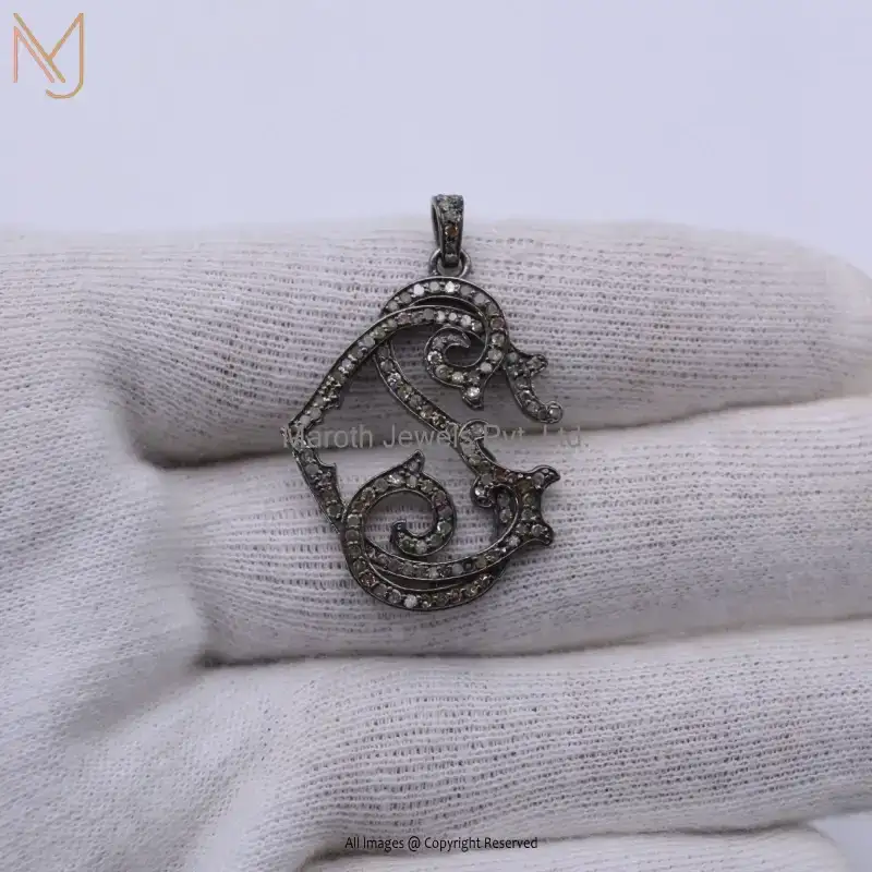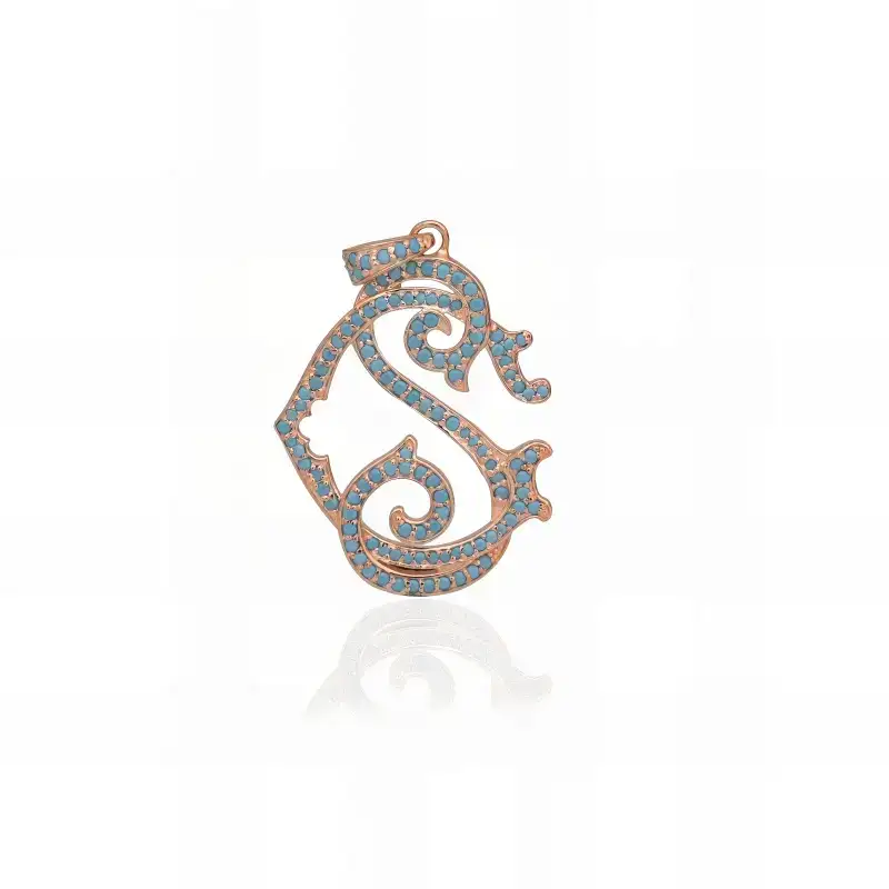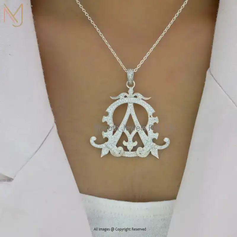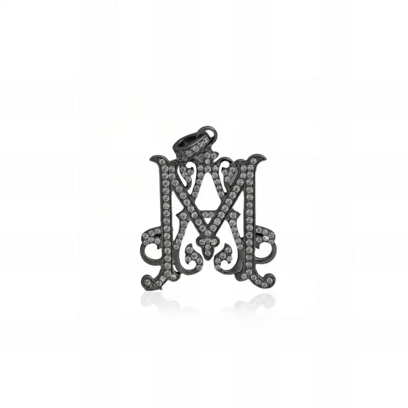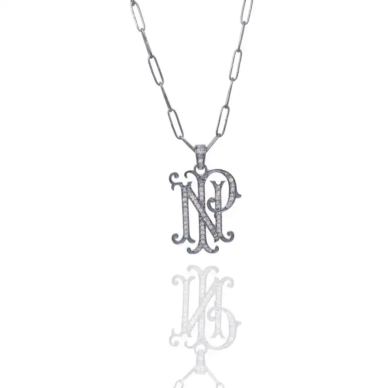 14K Yellow Gold Monogram Letter Gemstone Pendant Custom Jewelry