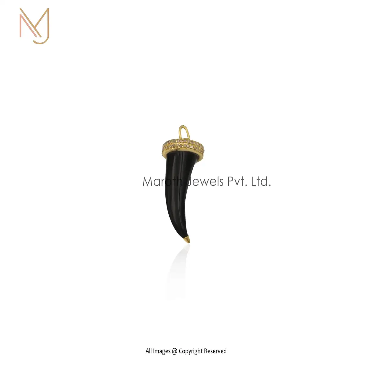 14K Yellow Gold Moonstone Blue Sapphire Horn Pendant Jewery Supplier
