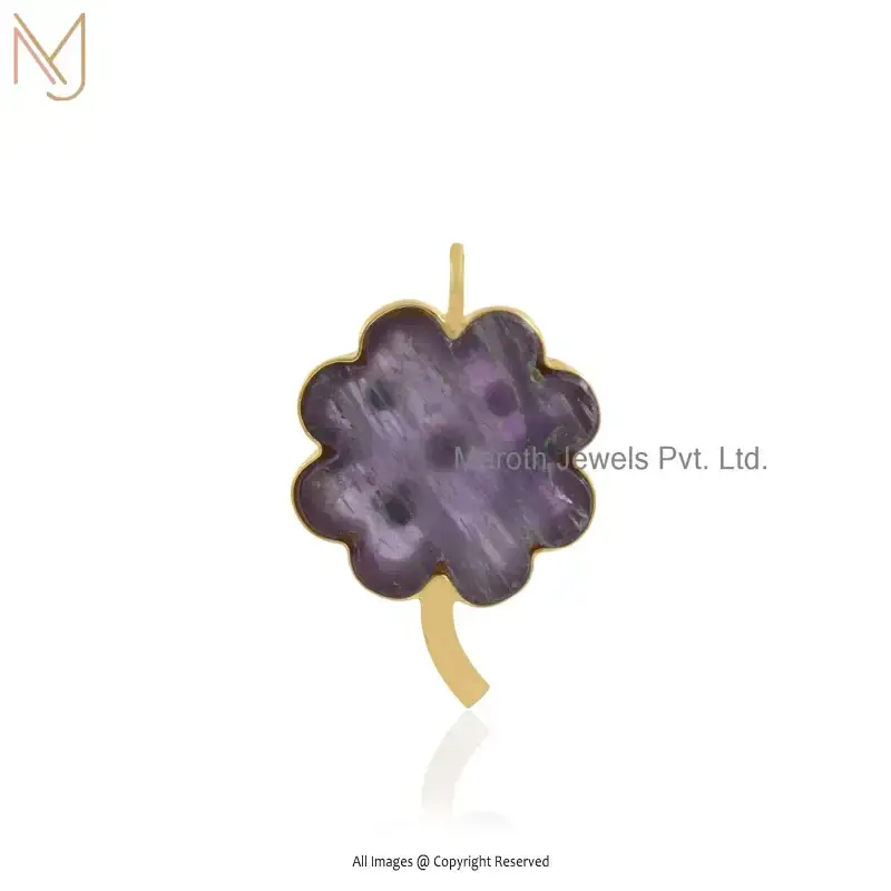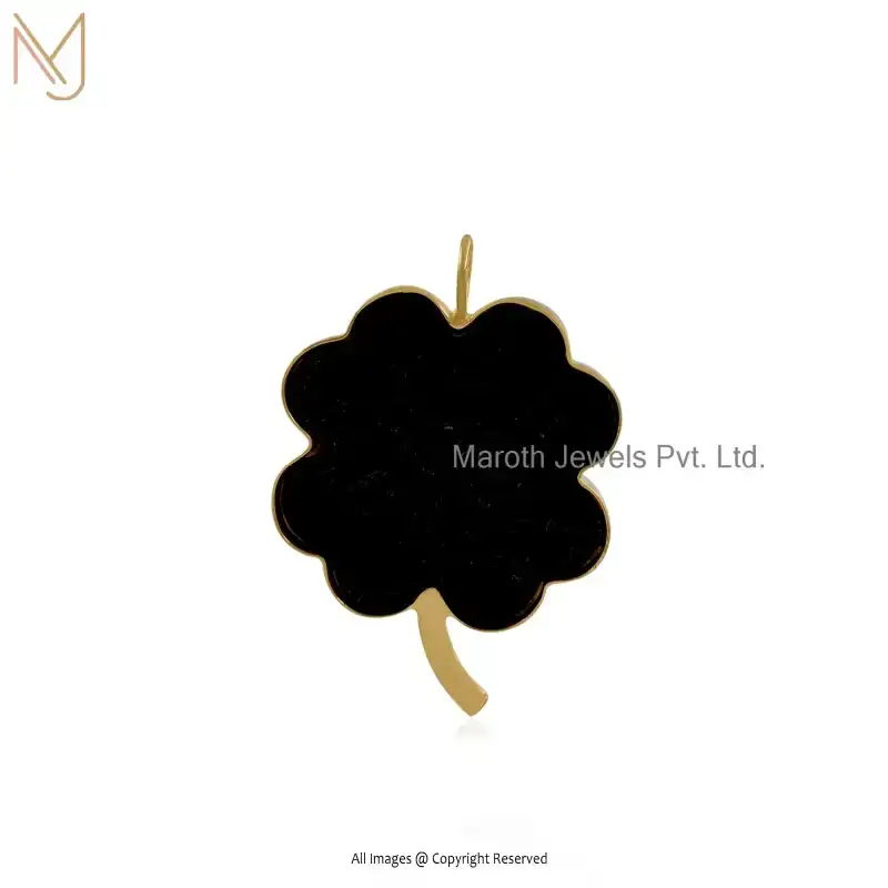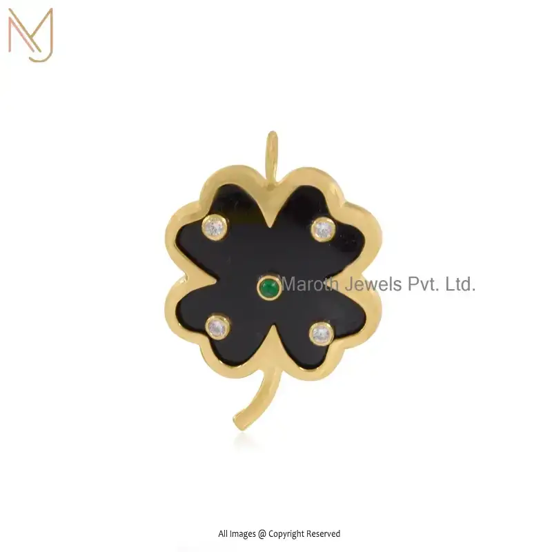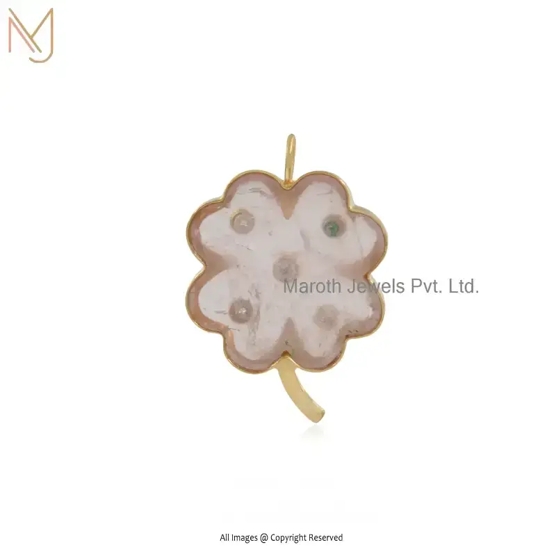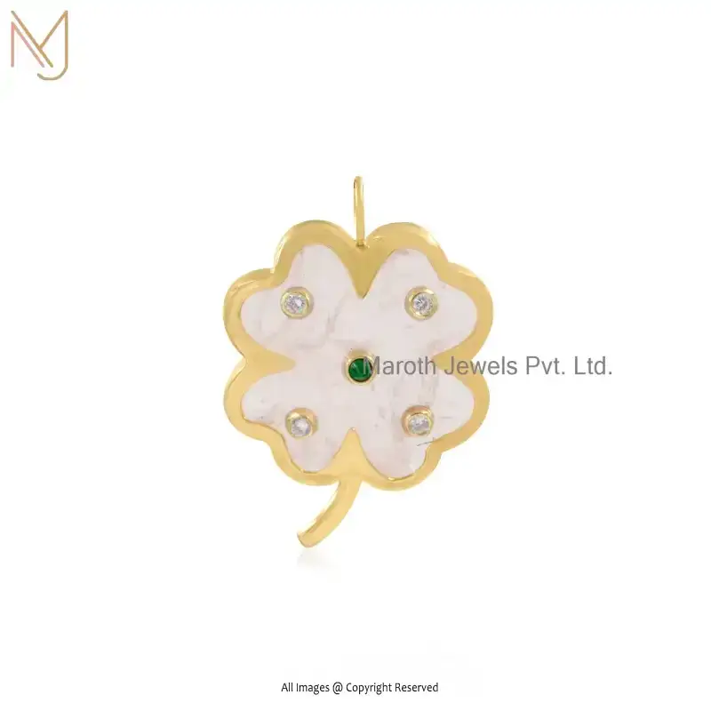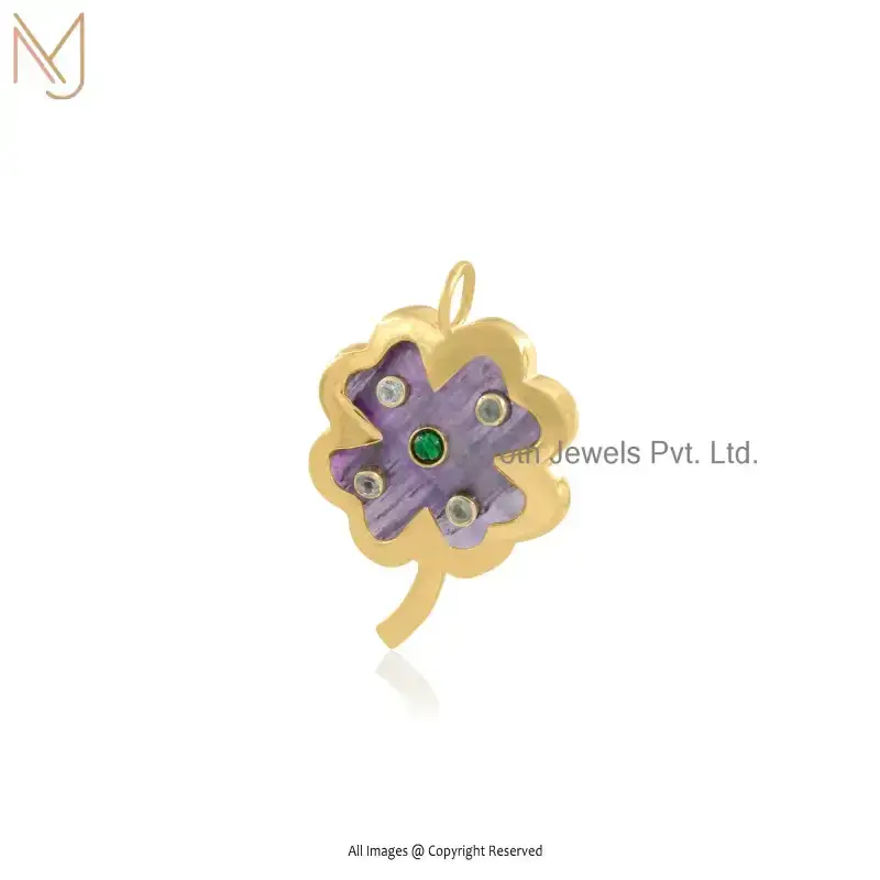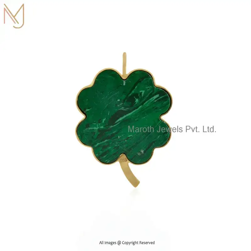 14K Yellow Gold Moonstone & Blue Topaz And Malachite Leaf Clover Flower Pendant USA