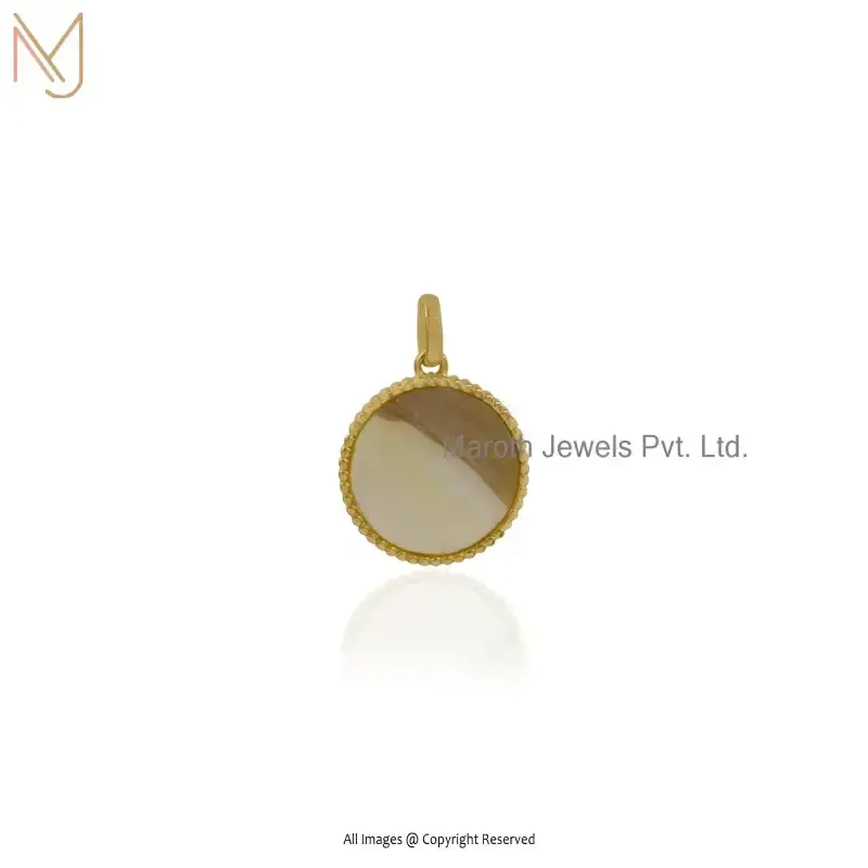 14K Yellow Gold Moonstone Pink Opal & White Cubic Zircon Gemstone Flower Disc Pendant USA