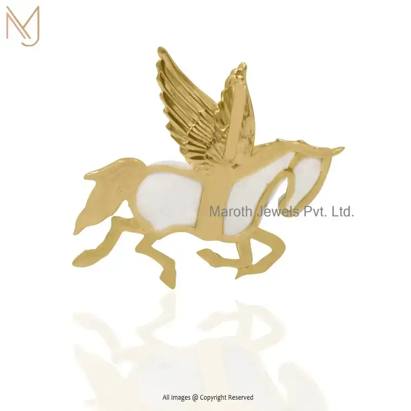 14K Yellow Gold Moonstone Small Stone Ruby & CZ Flying Horse Pendant USA