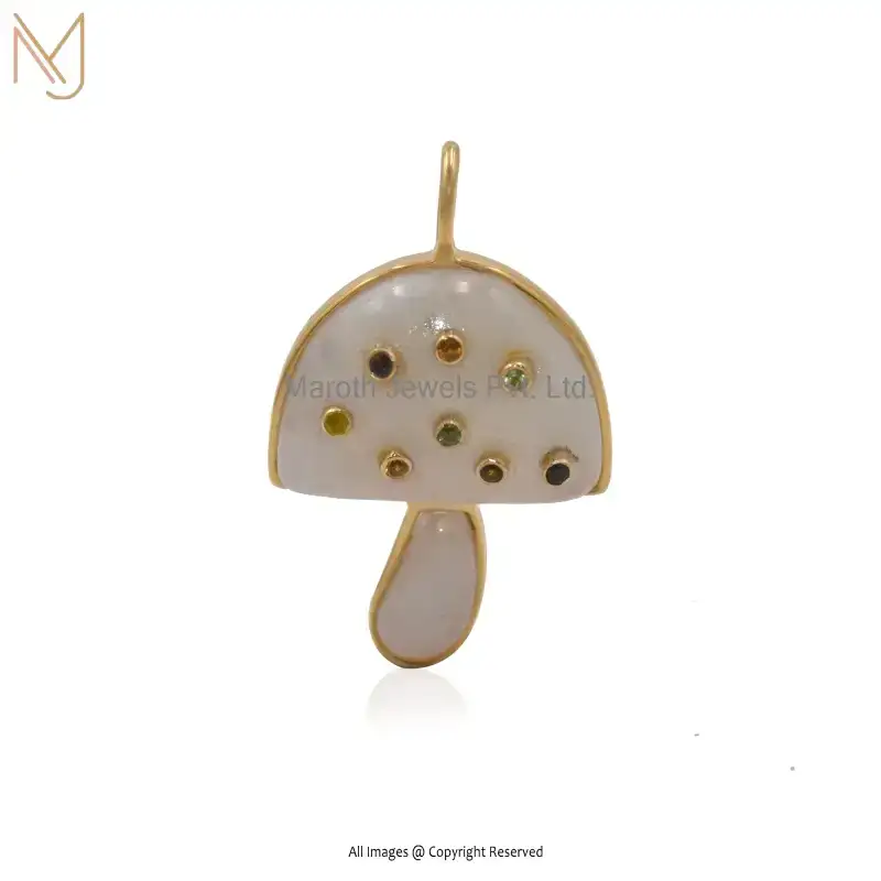 14K Yellow Gold Moonstons Gemstone Mushroom Pendant Jewelry USA