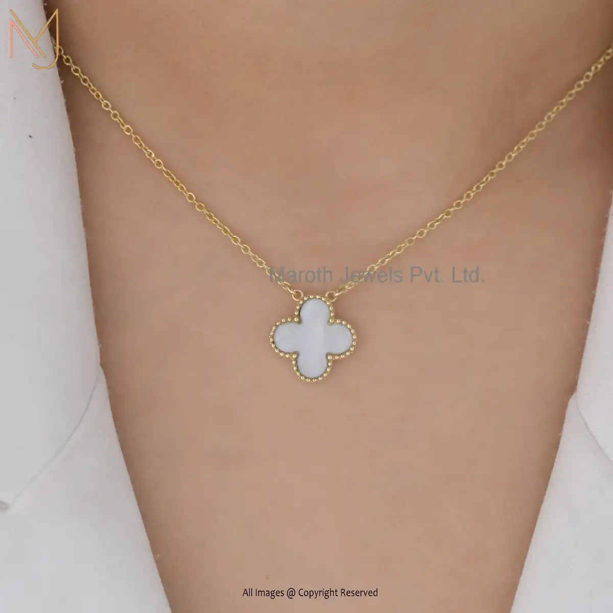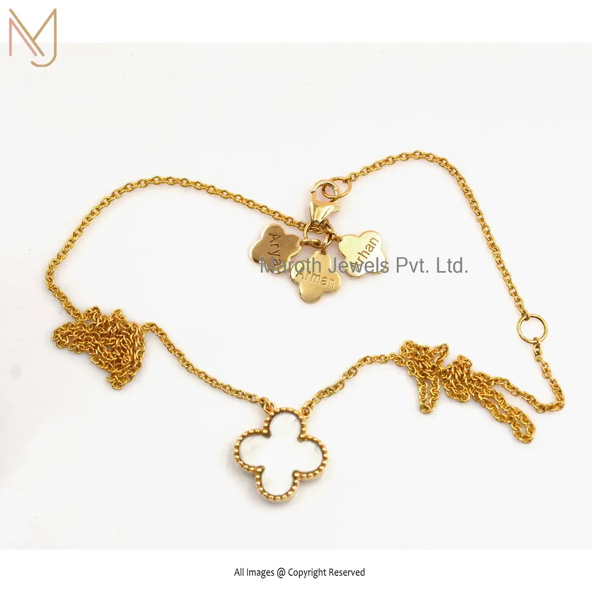 14k Yellow Gold Mother Of Pearl Clover Pendant Necklace Manufacturer