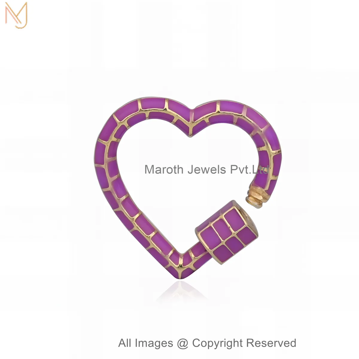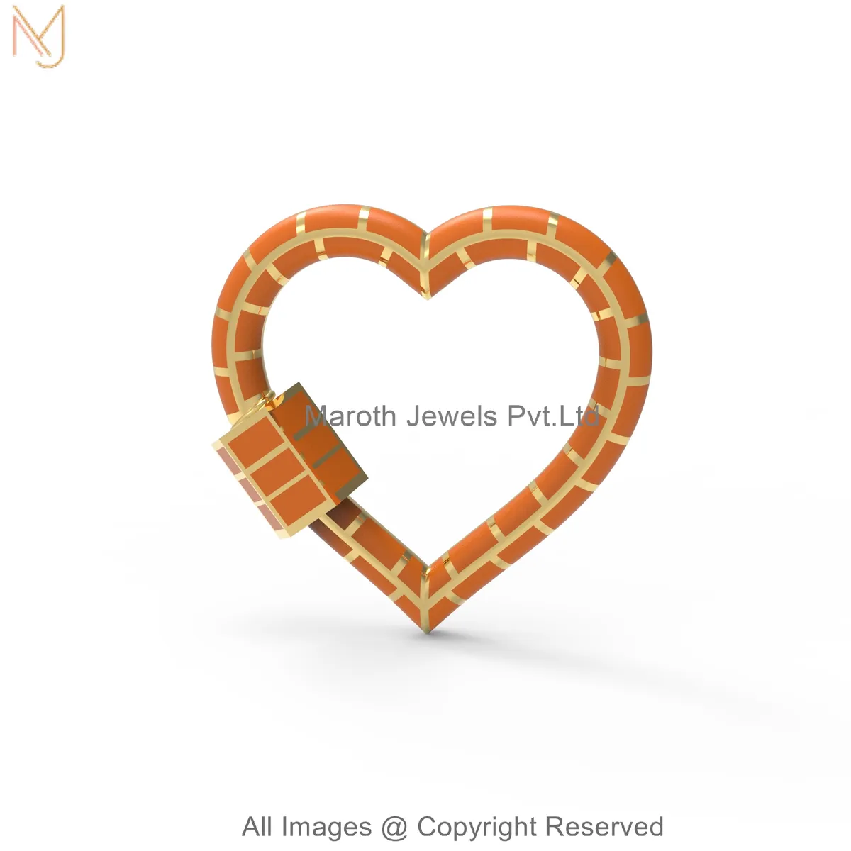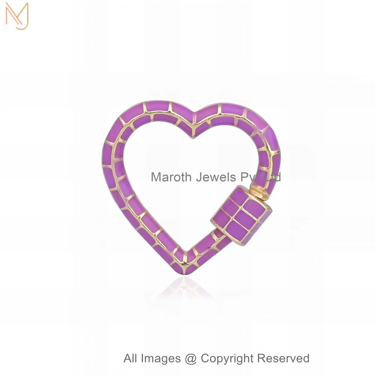 14K Yellow Gold Multi-Enamel Heart Carabiner Lock Jewelry Supplier