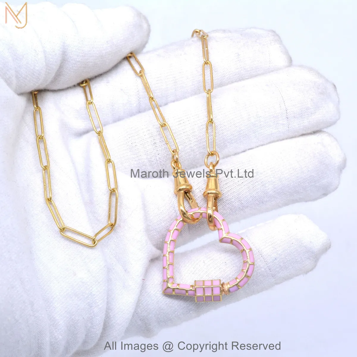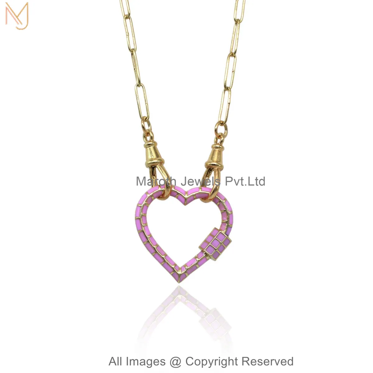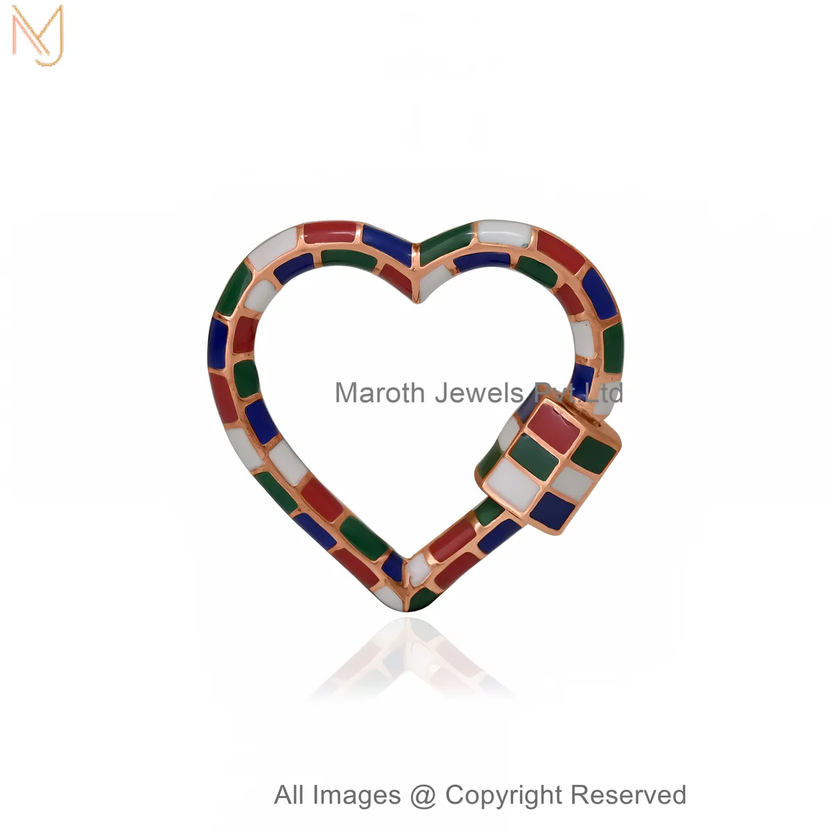 14K Yellow Gold Multi-Enamel Heart Carabiner Lock Jewelry Supplier