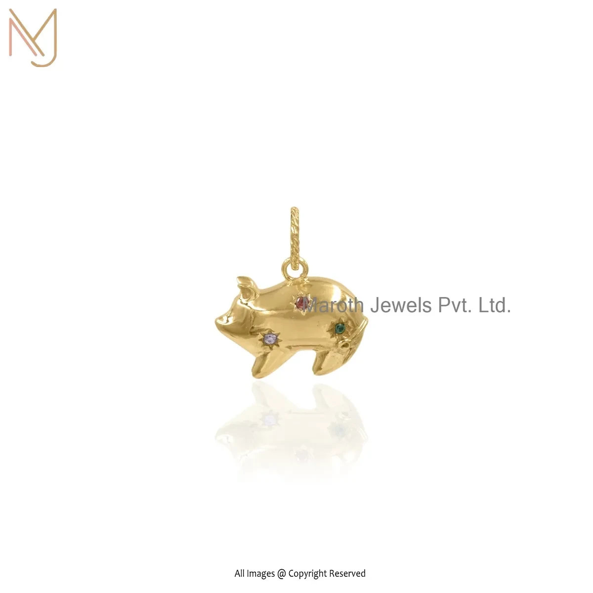 14K Yellow Gold Multi Gemstone Lucky Wishful Pig Pendant Jewelry Supplier