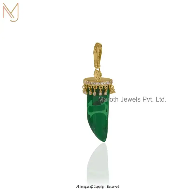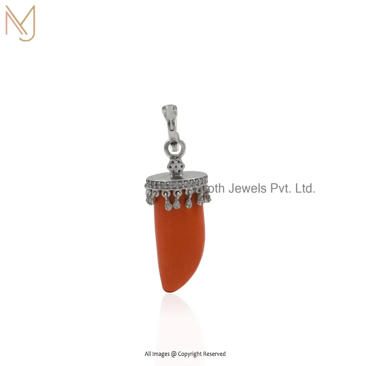 14K Yellow Gold Orange Coral & Moissanite Gemstone Horn Pendant USA