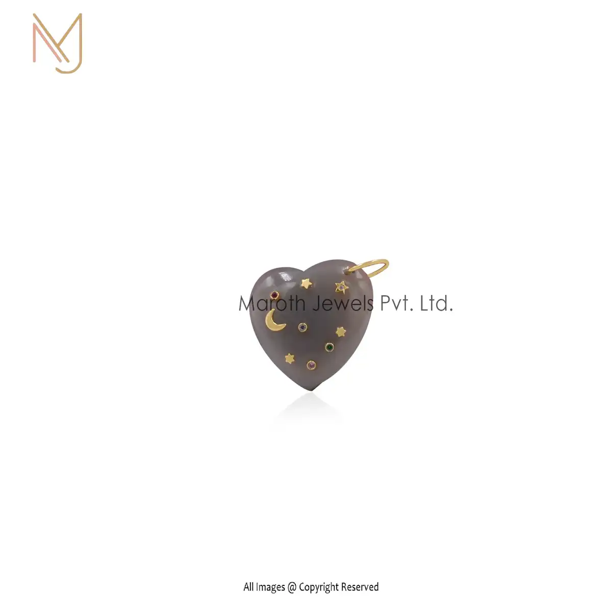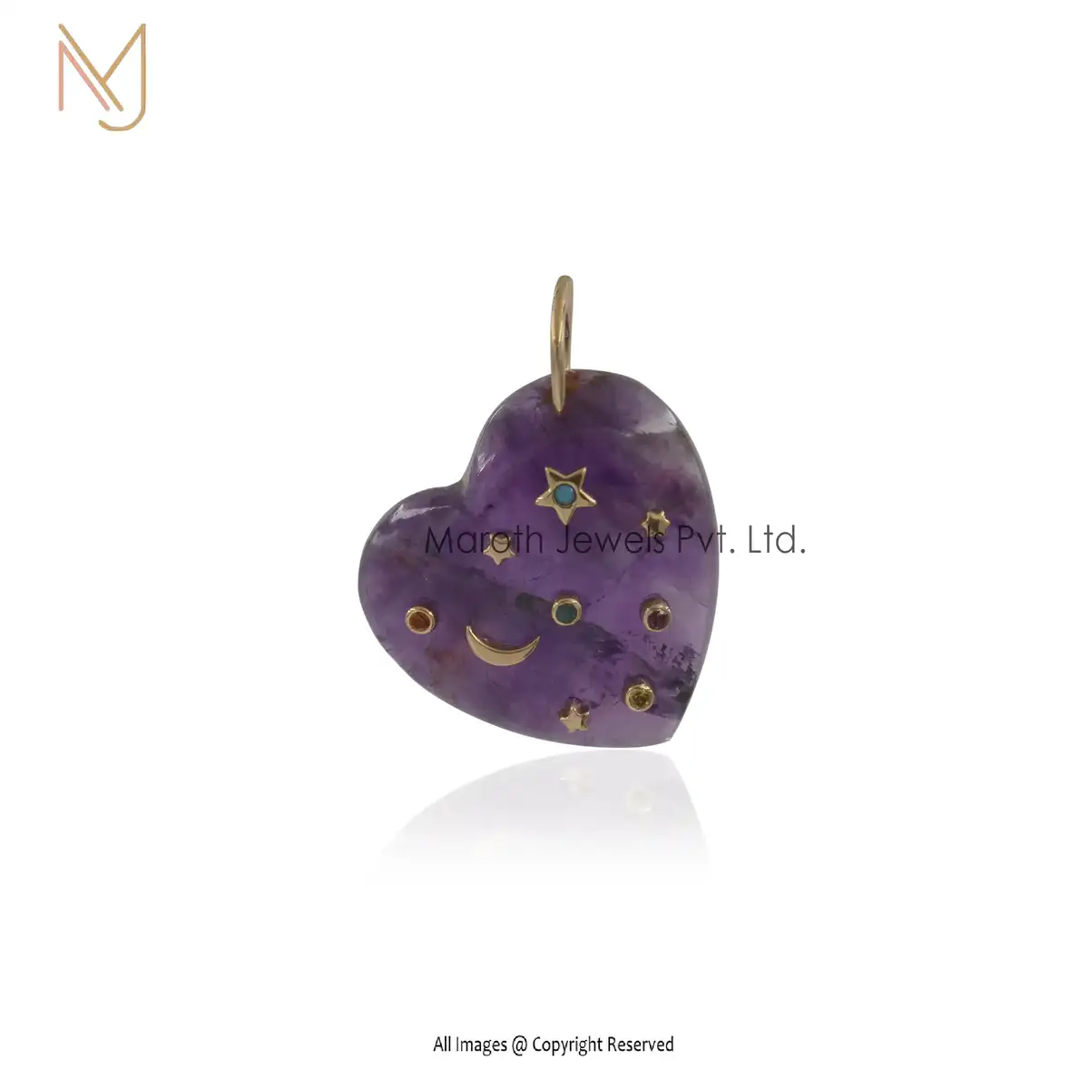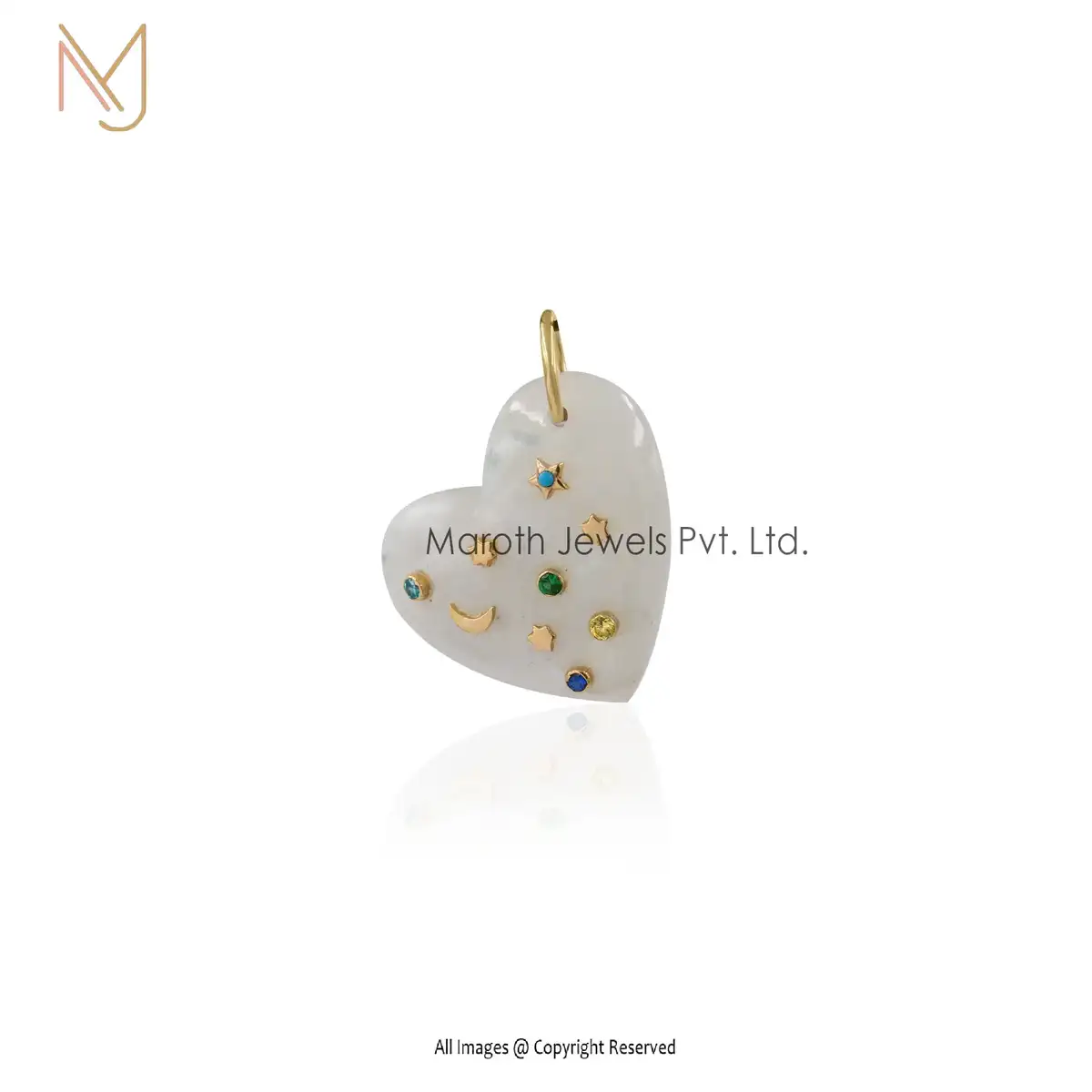 14K Yellow Gold Orange Coral & Multi Gemstone Heart Pendant Jewelry USA