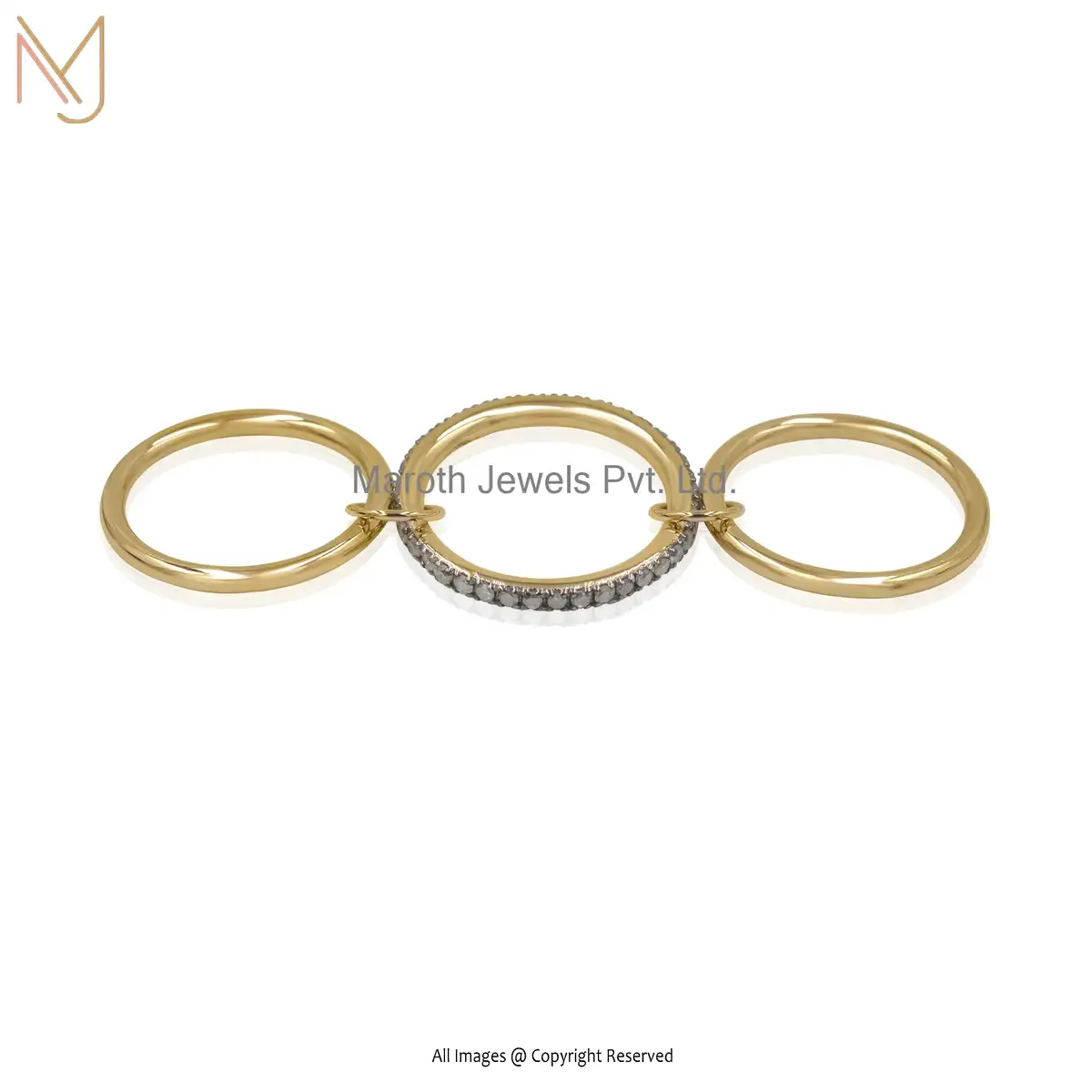 14K Yellow Gold Pave Diamond Connected Band Ring Jewelry Supplier